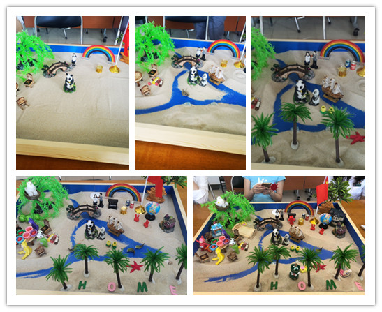 在老师的引导下,大家先跟沙子做亲密接触,慢慢放空自己;然后按照老师的指引,从沙具置放区随心选择自己喜欢的沙具放在沙子上,同时轮流分享自己的心情和故事。