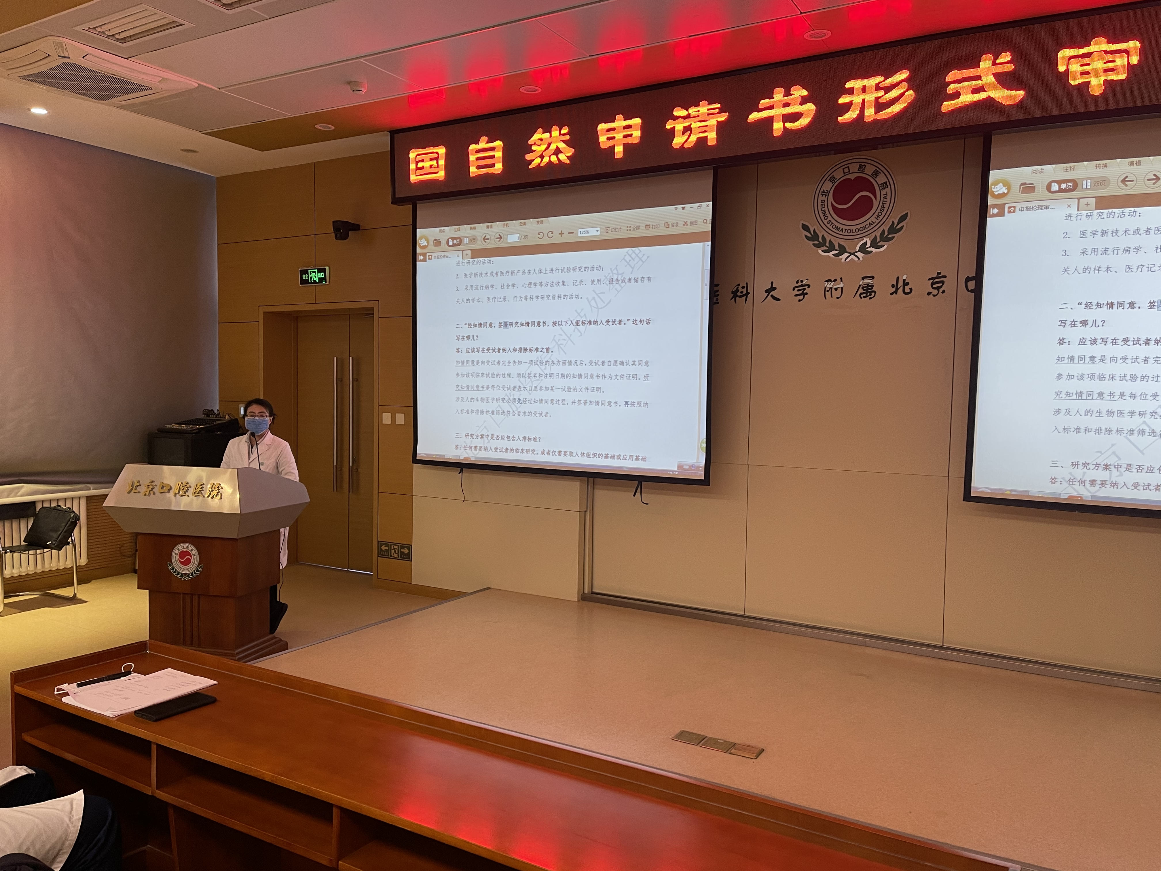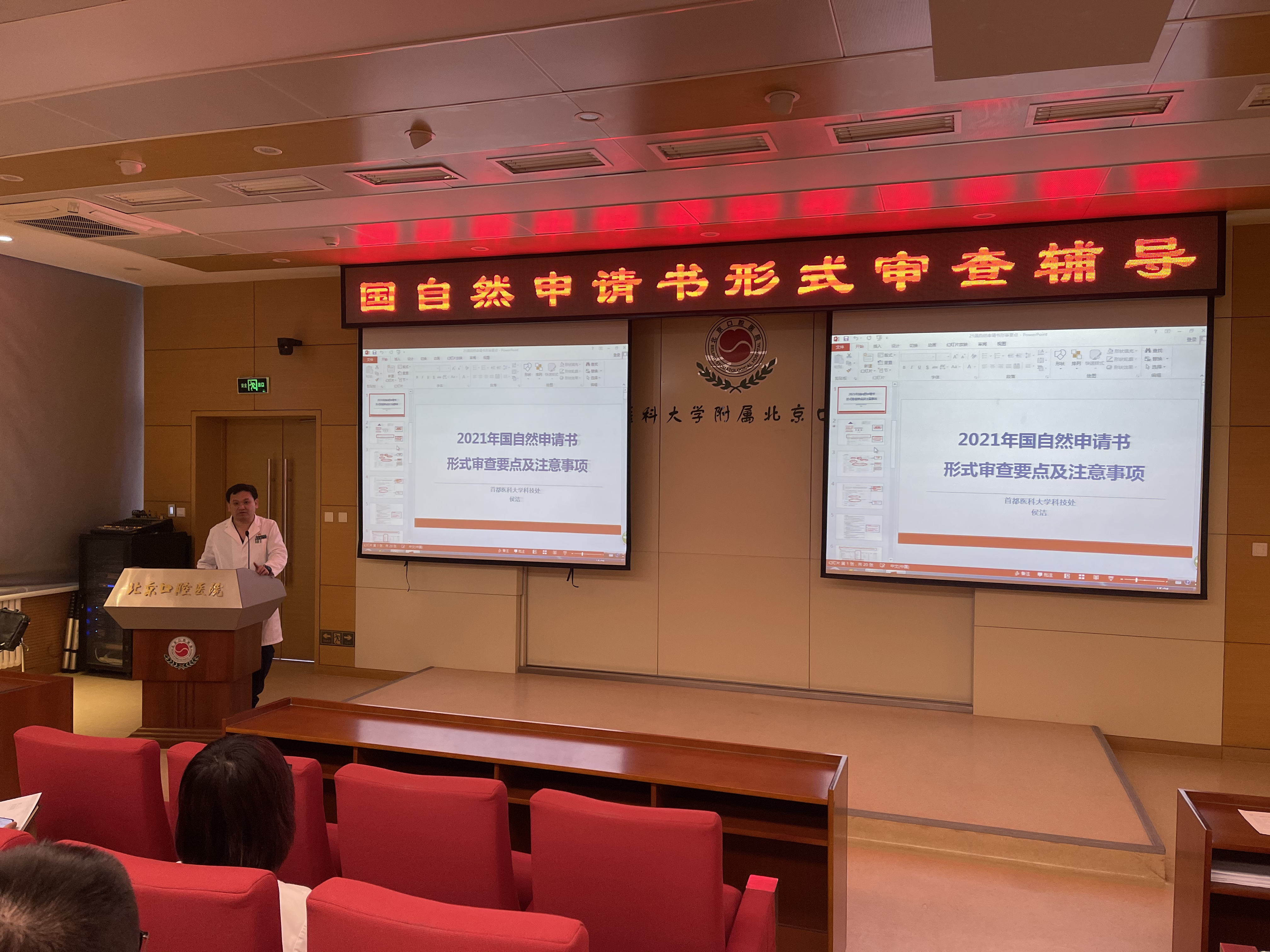 本次讲座由科技处副处长周建主持,邀请了首都医科大学科技处侯洁老师做《国自然申请书形式审查要点及注意事项》讲座并对参会人员的提问进行现场答疑与辅导。参会人员包括各临床、医技科室及口腔医学研究所的国自然申报人员。