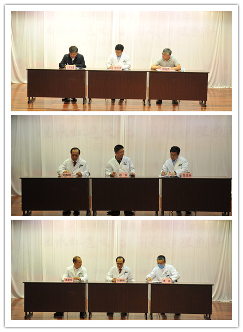 随后举行了建设相关方廉政书签署仪式。医院、施工总包单位、监理单位共同签署三方廉政责任书;党委书记、院长、主管院长签署廉洁自律承诺书;主管院长、规划建设处处长、迁建保障党支部书记签署廉洁自律承诺书。