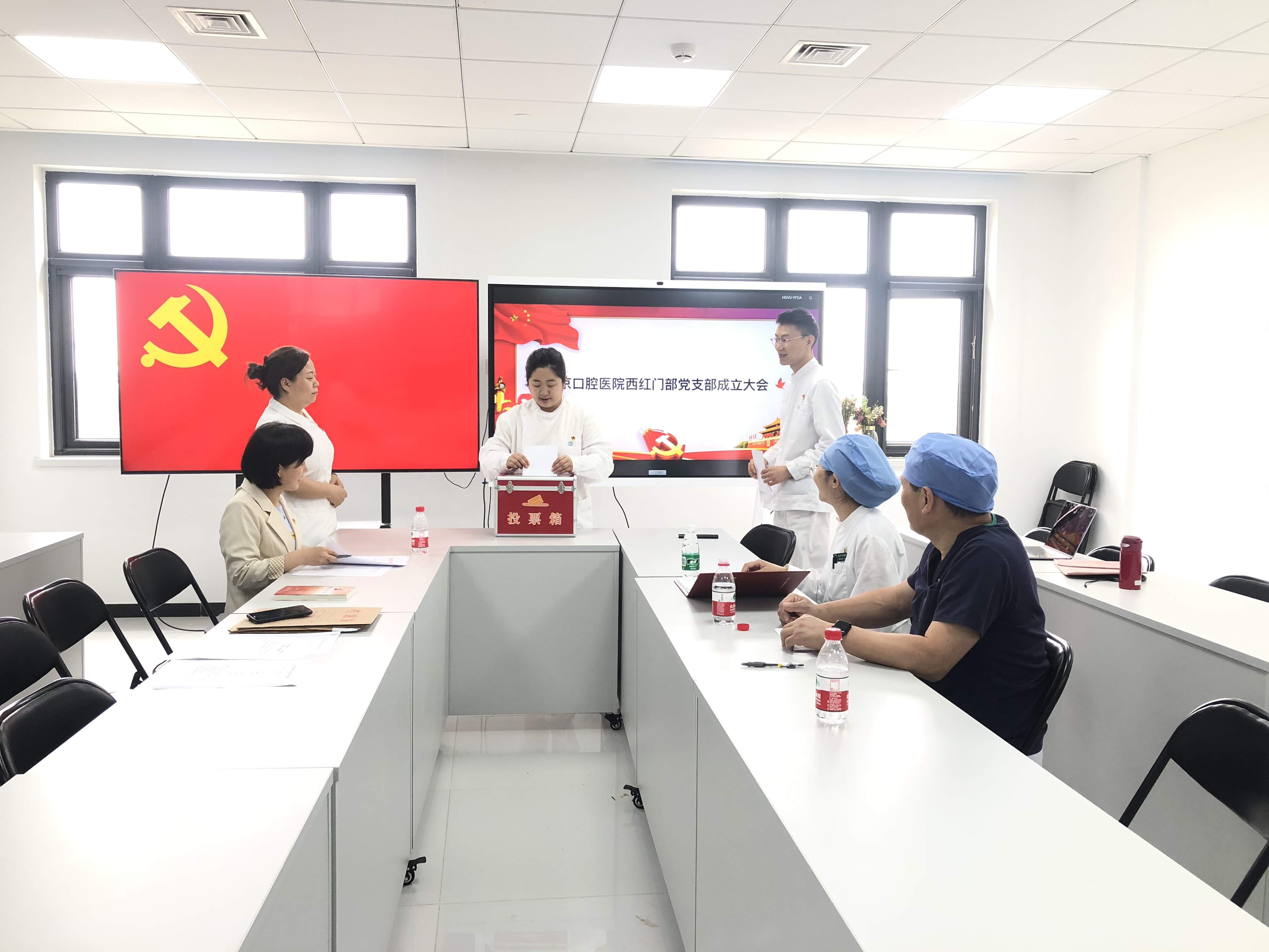2021年5月14日中午,医院党办主任韩秀欣、副主任陈向雯到西红门部宣布院党委决定,并组织召开支部党员大会,进行党支部书记选举。西红门部5名党员全部到会。