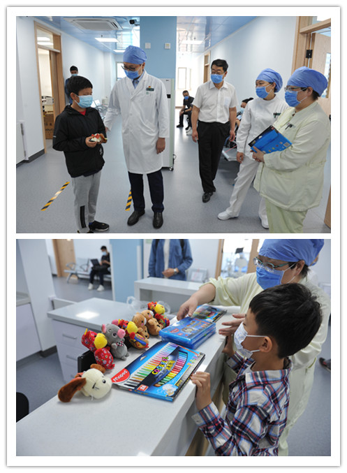 为使来院就诊的患儿们度过一个开心难忘的节日,“六一”儿童节当天,我院党委副书记吴缦莉和副院长吴家锋分别带领医务人员来到天坛部和王府井部儿童口腔科,为来院就诊的小朋友们送去儿童节的祝福。