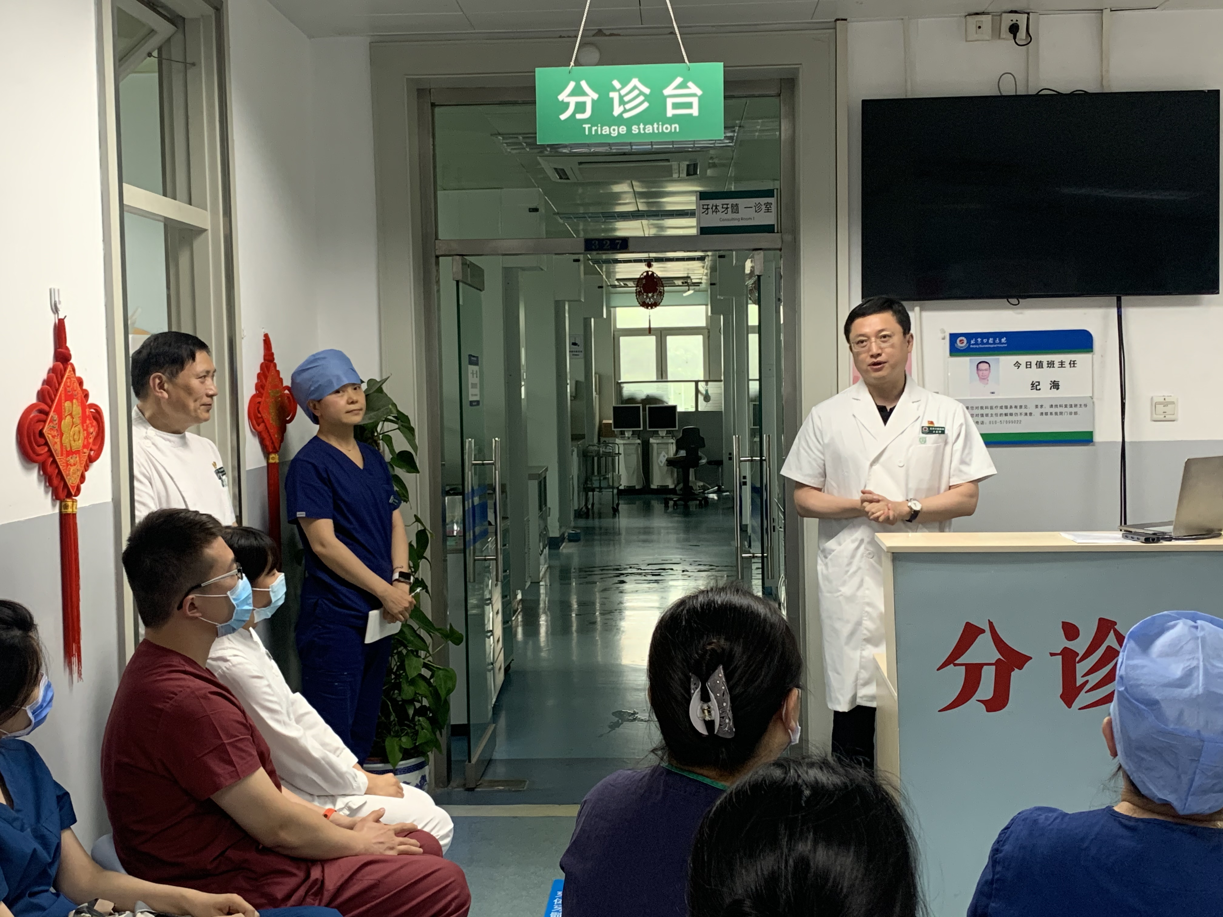 2021年6月29日下午4点,牙体牙髓科主任侯本祥以“从临床细节看医疗质量管理”为题,在候诊室举办了一次特殊的病例学习会。会议由张琛副主任主持,科室全体医师、护士、研究生、规培生和实习生均参加了会议,并邀请副院长吴家锋全程参与。
