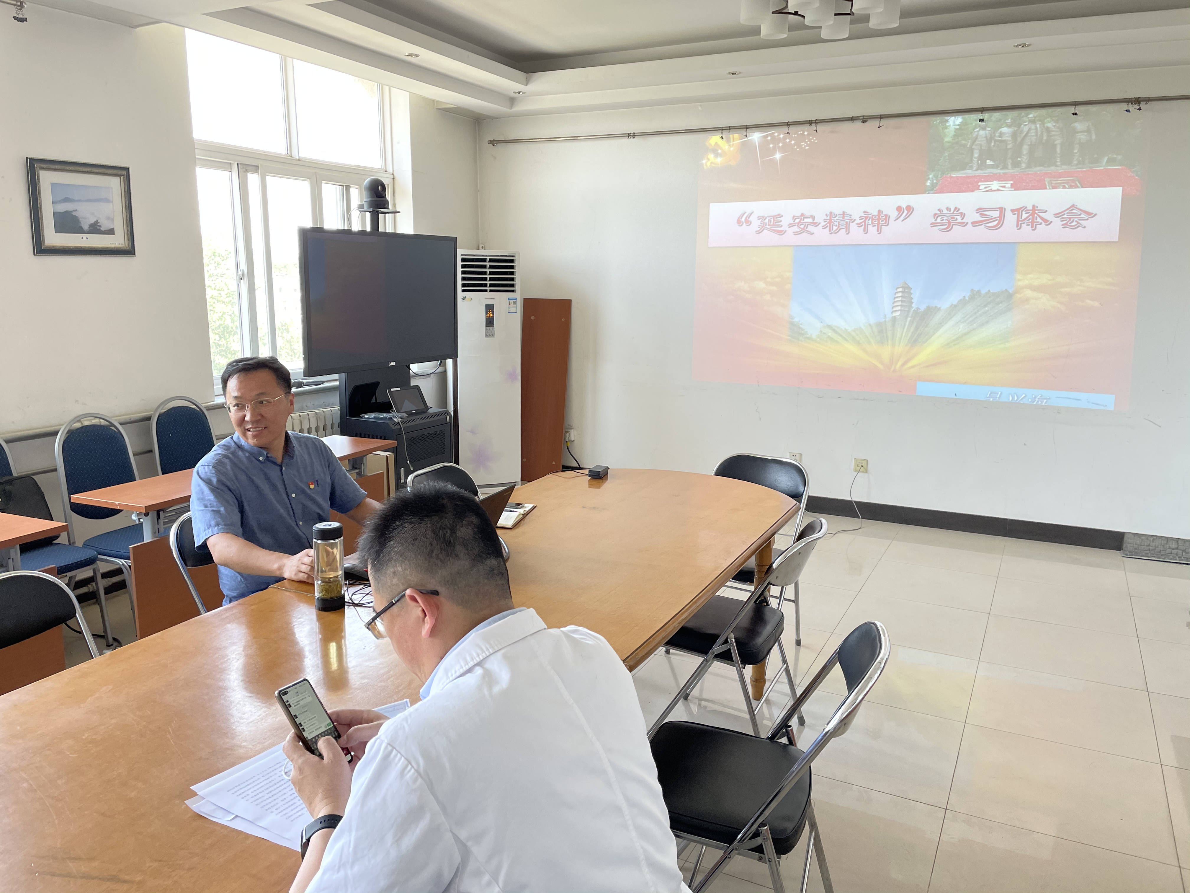 吴兴海副院长带领支部党员梳理了延安精神孕育提出的全过程,阐释了延安精神的内涵和主要内容,以及当代我们应如何继承弘扬延安精神,他提出在推进公立医院高质量发展过程中,要学习传承好延安精神,坚持全心全意为人民服务的根本宗旨;在常态化疫情防控阶段,要大力弘扬艰苦奋斗的延安精神,坚定过“紧日子”的思想,持之以恒、久久为功,全力为群众提供优质、高效的医疗服务。
