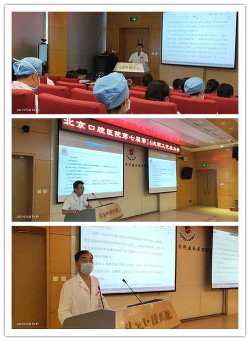会上,副院长吴家锋汇报了北京口腔医院绩效考核与分配改革工作方案;总务处副处长常伟汇报了北京口腔医院职工院内停车实施方案;财务处处长王永奇通报了北京口腔医院住房公积金情况。