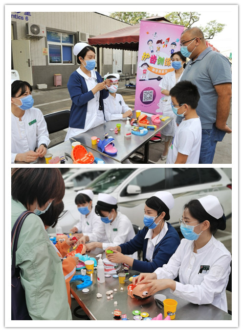此外,院内还开展了护齿训练营活动,现场的医护人员通过刷牙游戏、现场指导等互动体验,为群众详细讲解刷牙方法及牙线、牙缝刷的使用方法等,循环播放口腔健康科普视频,让前来参与的患者和市民了解口腔保健知识,促进全民口腔健康,助力全身健康。