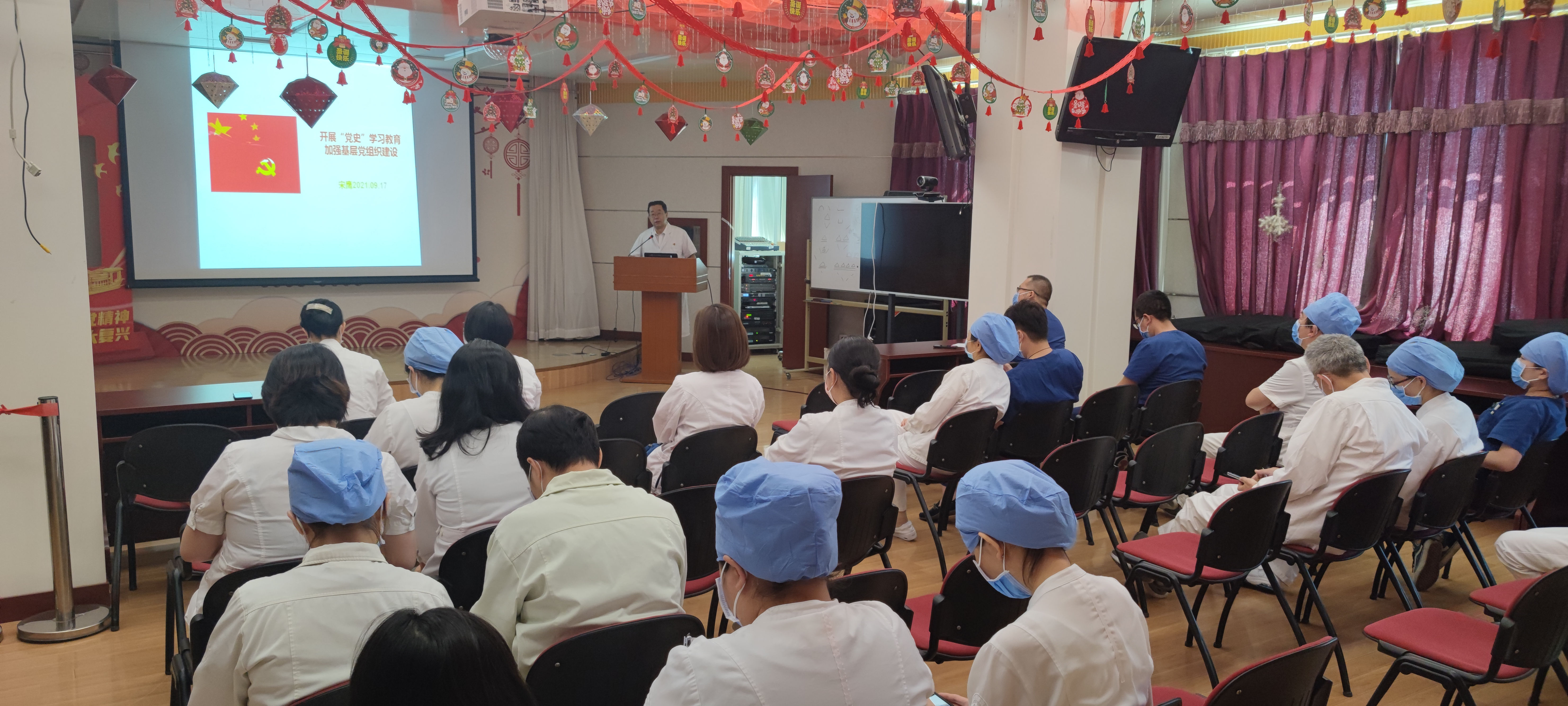 2021年9月17日,我院王府井部开展党史学习教育,党委委员宋鹰围绕“开展党史学习教育 加强基层党组织建设”主题为王府井部全体党员上了一堂生动的党课,并特别针对“如何开好组织生活会”专题做了详细讲解。