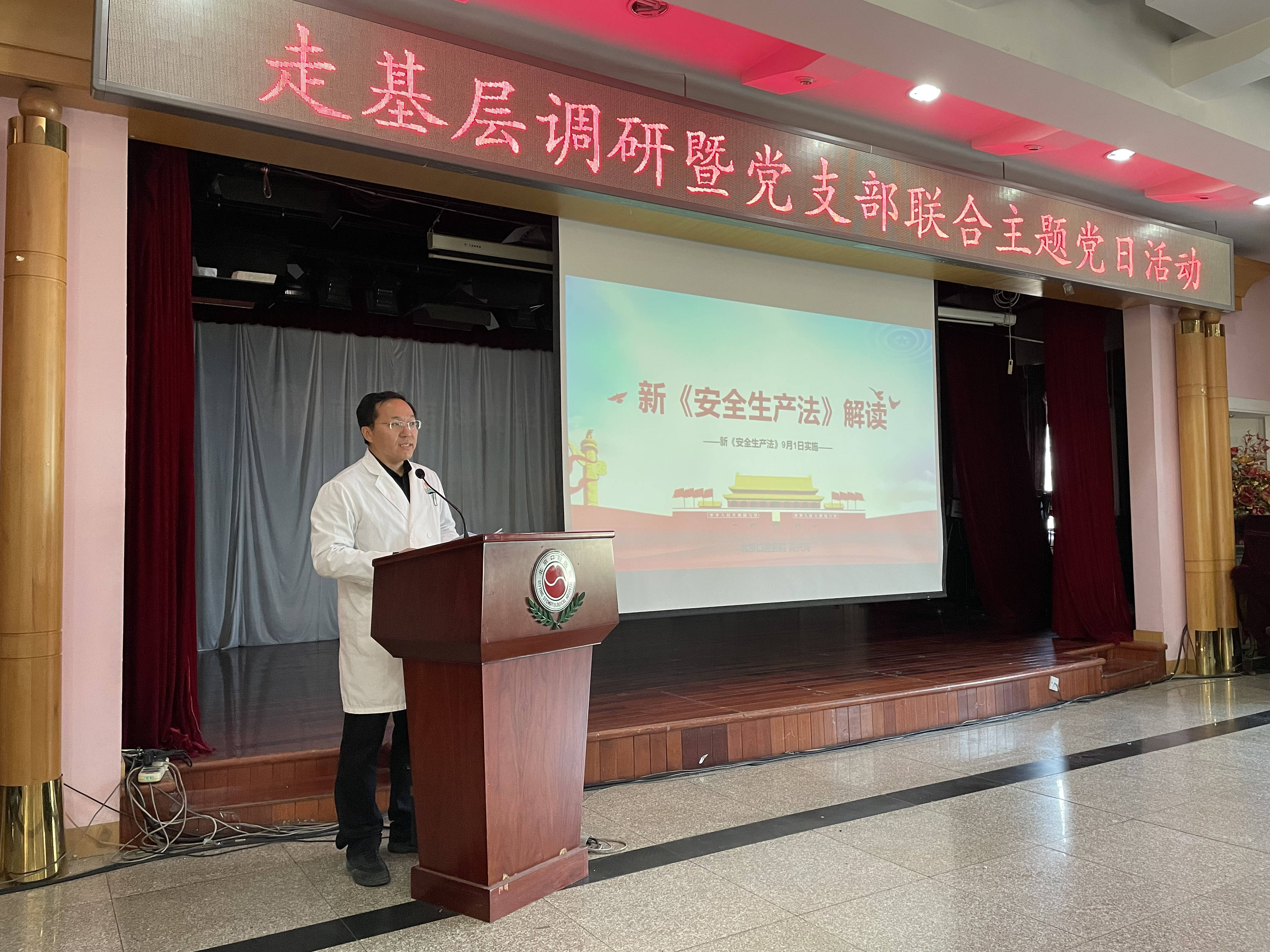 党委副书记吴缦莉介绍了本次活动主题和主要参会人员。吴兴海副院长对新《安全生产法》进行主题党课宣讲,新《安全生产法》自9月1日起正式实施,是我国安全生产的基础法、综合法。吴兴海副院长从起草背景、总体宗旨和总要求、对生产企业、政府部门和第三方机构的权责要求以及十大内容亮点分别进行了详细解读,并结合我院生产运营实际提出了相应要求。同时,针对系统内出现的警示案例,着重强调医院全体职工要提高安全认识,严肃纪律意识,严禁酒驾、严禁醉驾。