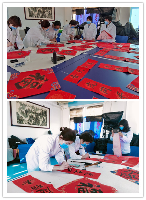 2022年农历春节将至,为庆祝新年到来,让职工感受传统风俗,营造欢乐、喜庆、祥和、文明的节日氛围,2021年12月30日中午,院工会书画协会在门诊楼五层职工之家开展了“迎新春 送春福”活动,书画协会成员和院内职工们一起“迎新送福”。