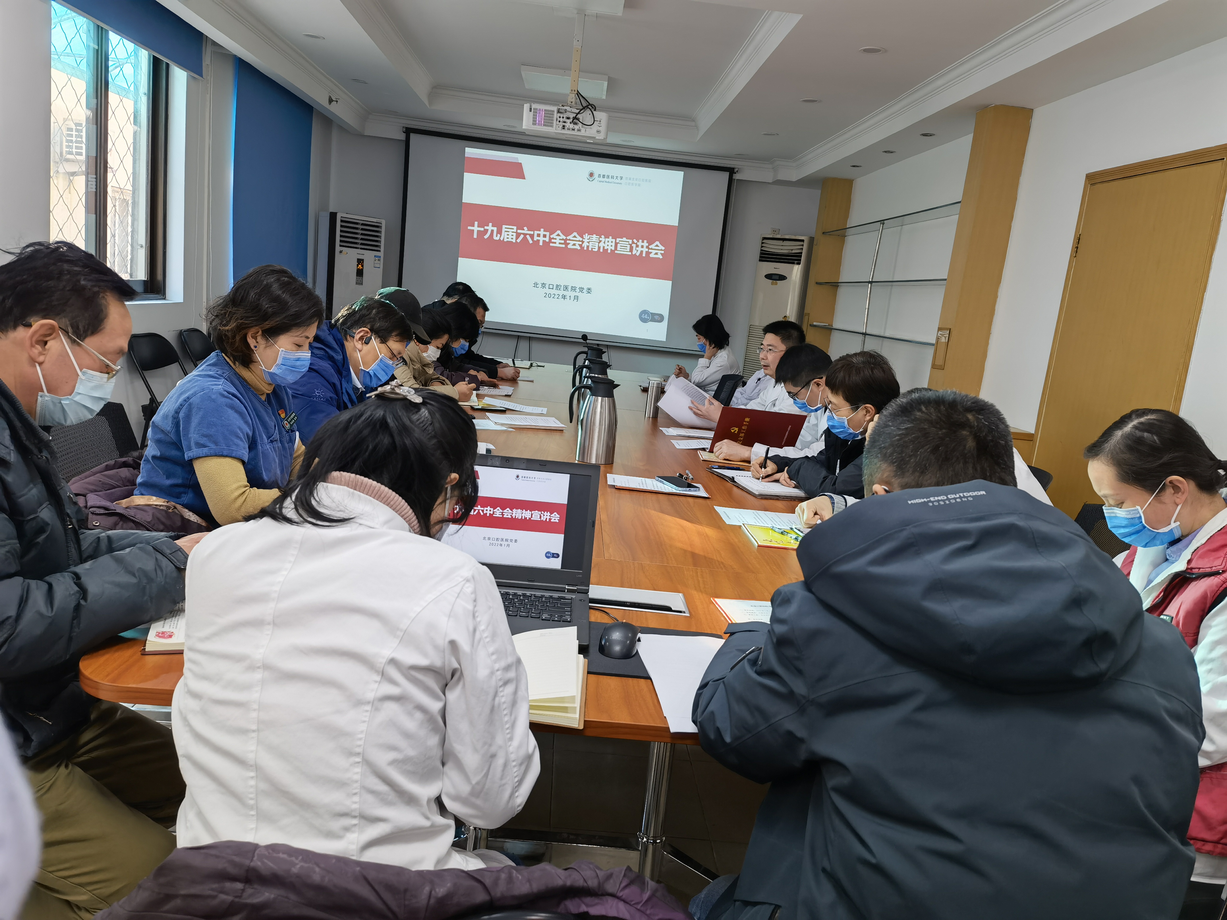 院党委要求各支部要把学习宣传贯彻党的十九届六中全会精神作为当前重要的政治任务。在接下来的工作中,一是要提升政治定力。全体支部书记要发挥“定盘星”作用,在两个百年历史的交汇期和医院各项事业发展过渡期,全面学习领会全会指导思想,切实把握规律,深入贯彻落实,弘扬正能量;二是要增强行动力。积极发挥支部战斗堡垒作用,带领全体党员“靠前一步、多做一点、先做一些”,在疫情防控、冬奥保障、医疗服务、“一址多点”等近期重点工作中主动作为、勇于担当,时刻坚持以人民为中心的思想打好主动仗,在实现口腔健康梦的新的“赶考”之路上交出一份满意的答卷!