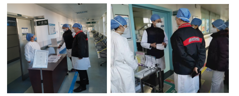 在预检分诊处,院领导认真检查预检分诊情况,强调要严格落实三级预检分诊筛查工作,做到不漏检、不错检,把牢各级预检关口。