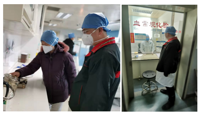 在临床科室医技科室,巡查组查看医务人员防护情况、医疗器械处置、环境清洁消毒落实情况,确保疫情防控措施落实到位。