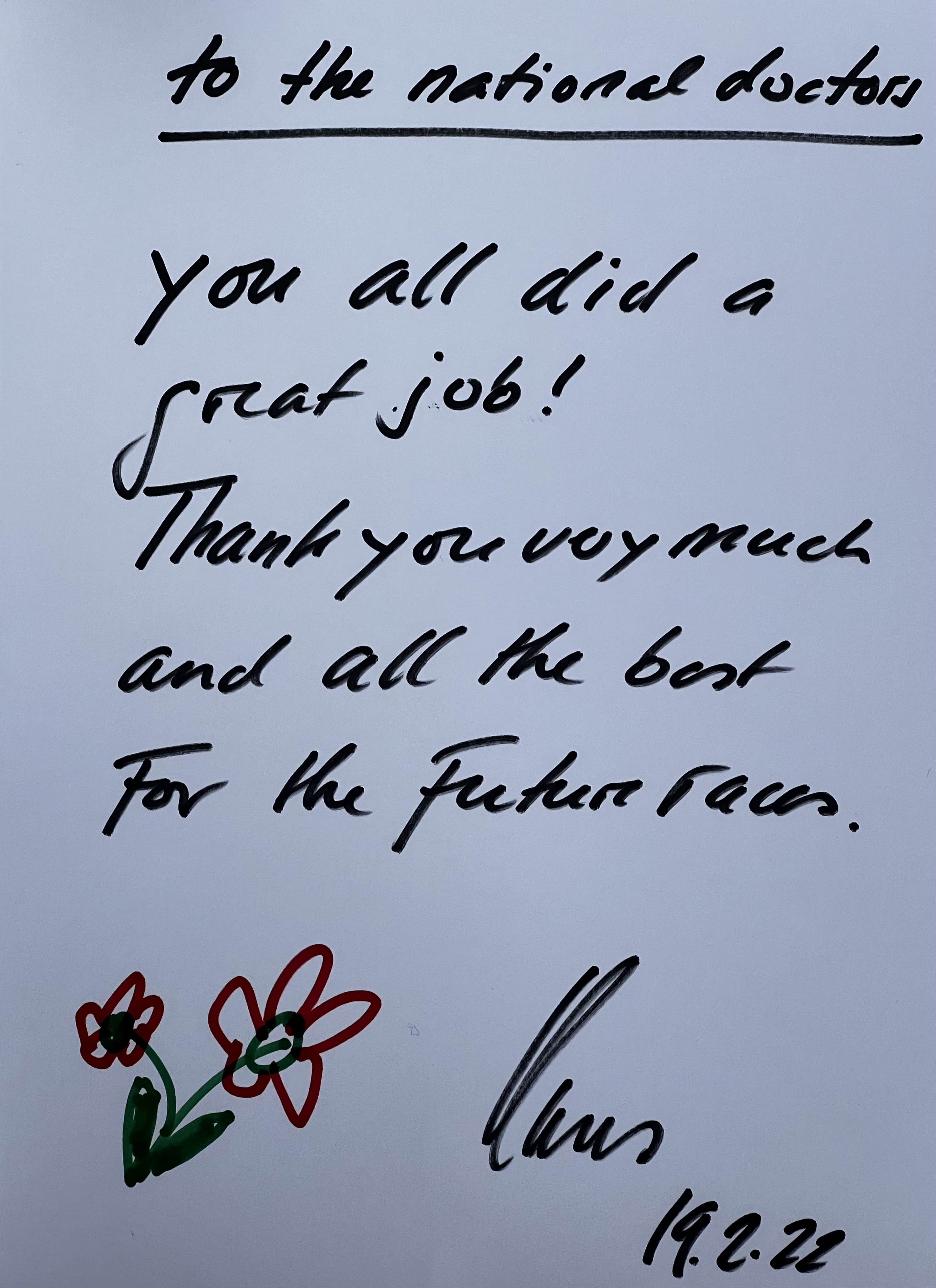 国际滑雪医生主管HANS对我国滑雪医生给出高度评价(中国“滑雪医生”们:你们全员出色的完成了任务,我对你们表示由衷的感谢,预祝未来赛程一切顺遂!)