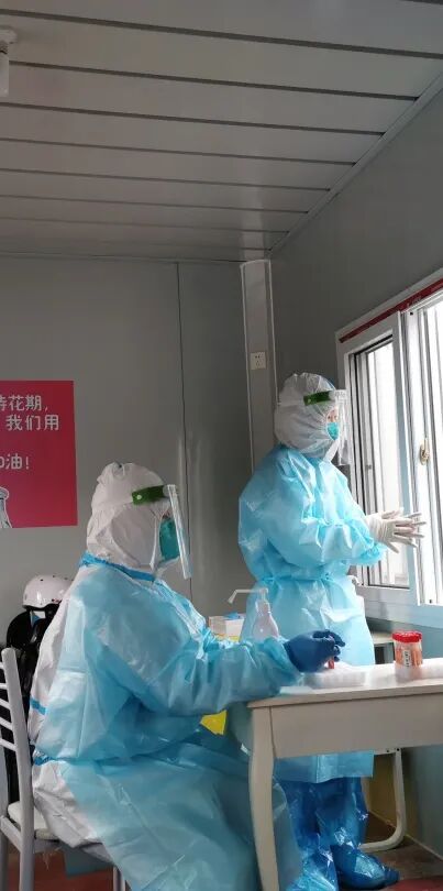 很多被抽调的医护人员克服阴雨天气、路途遥远等诸多困难,全员均于六点前抵达采样地点,确保采样任务准时开始。面对采样人群长长的队伍,采样队员们争分夺秒开展工作,撕开采集棒、抬手、采样、旋紧管盖、手消毒……在密不透风的防护服里,他们汗流浃背,但仍严格按照操作规范和流程做好核酸检测工作,没有一个人退缩,更没有一个人叫苦叫累。