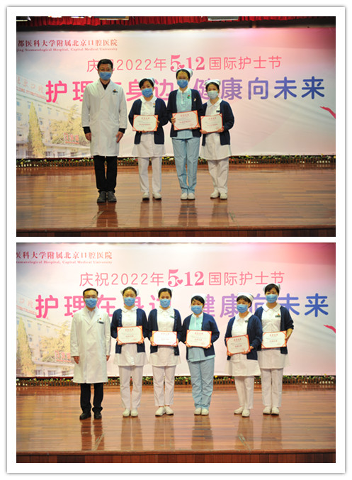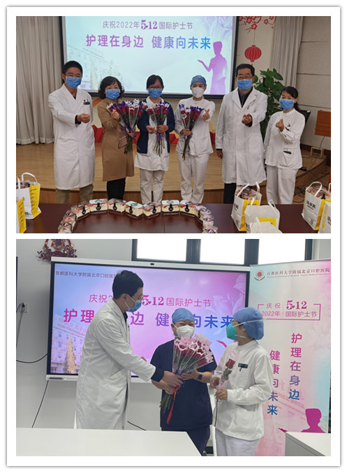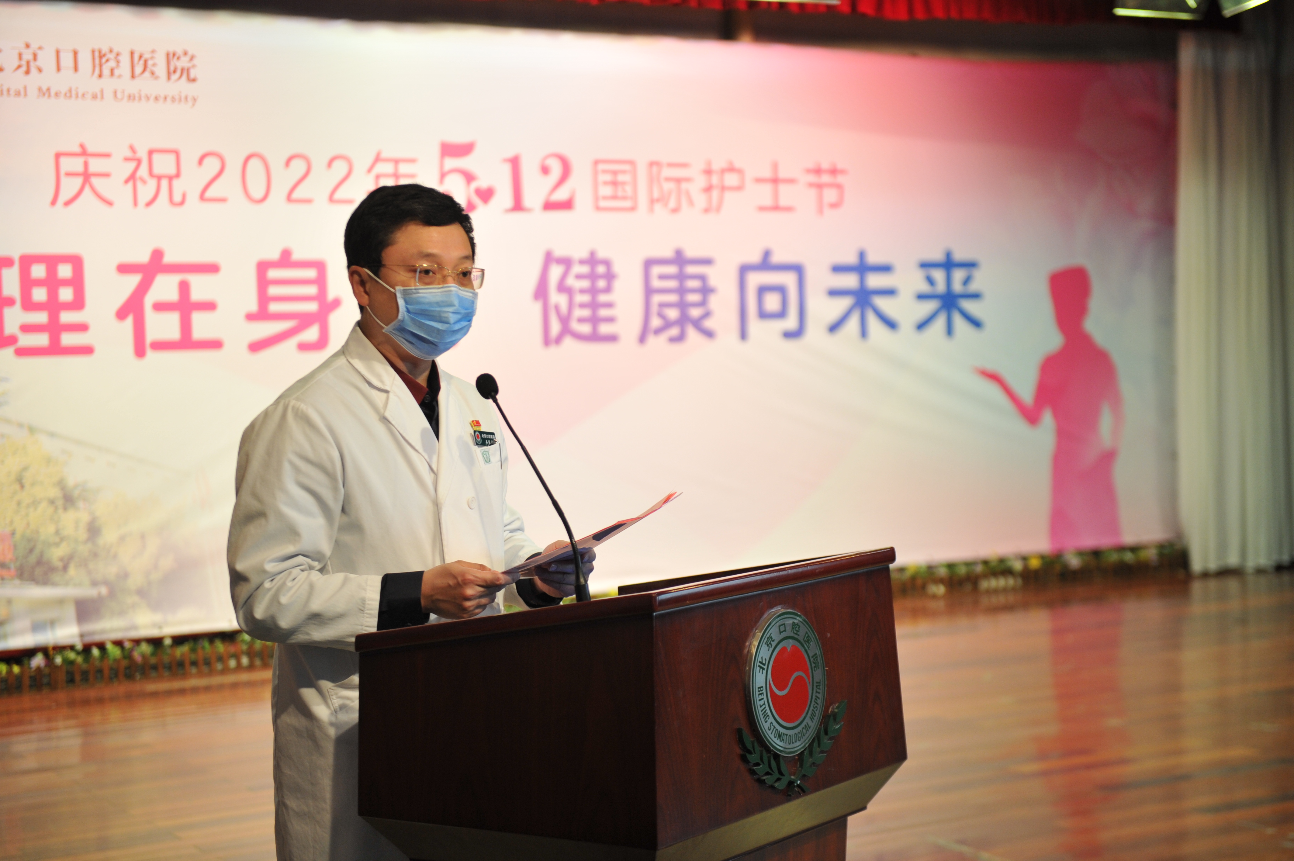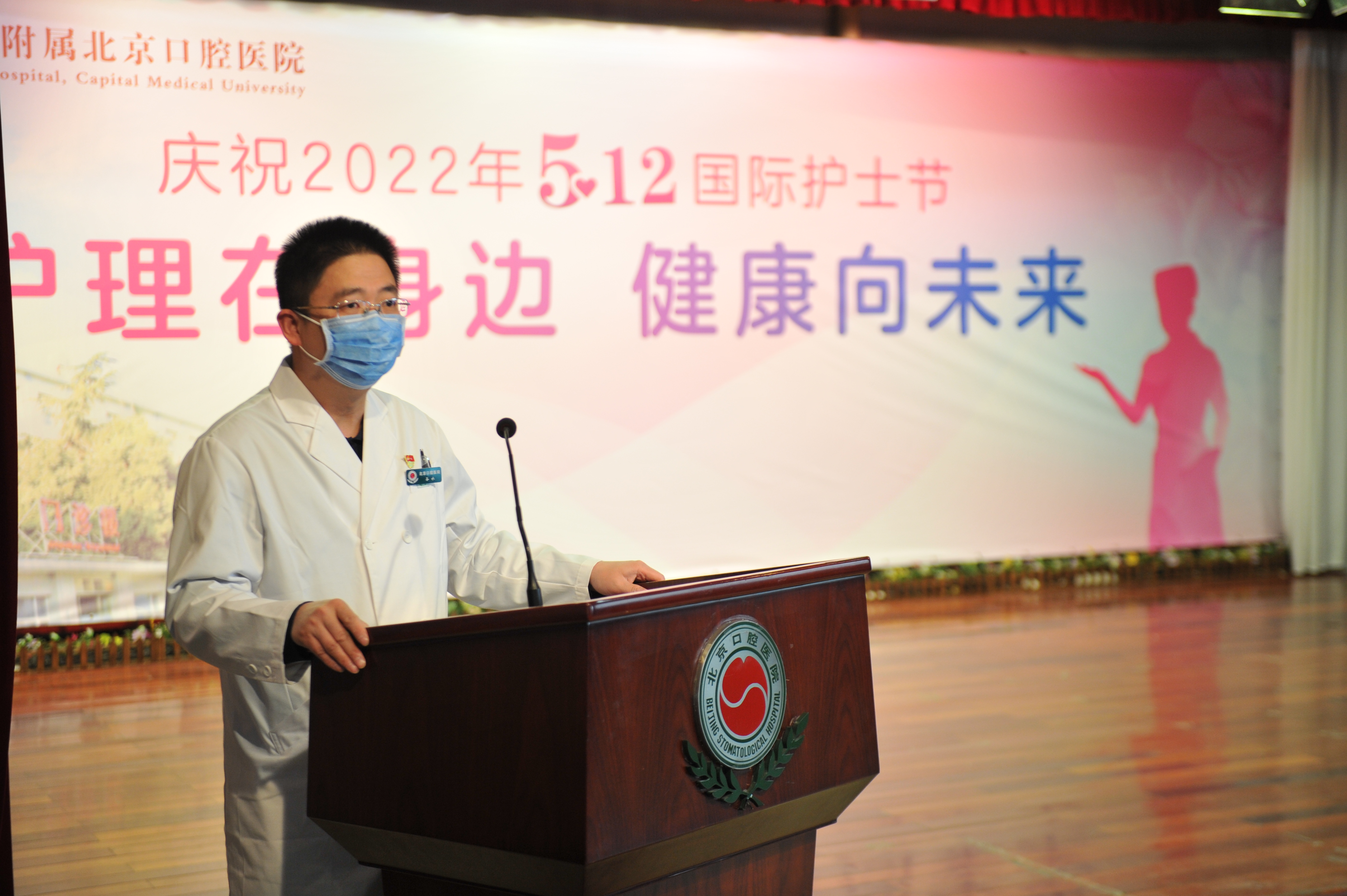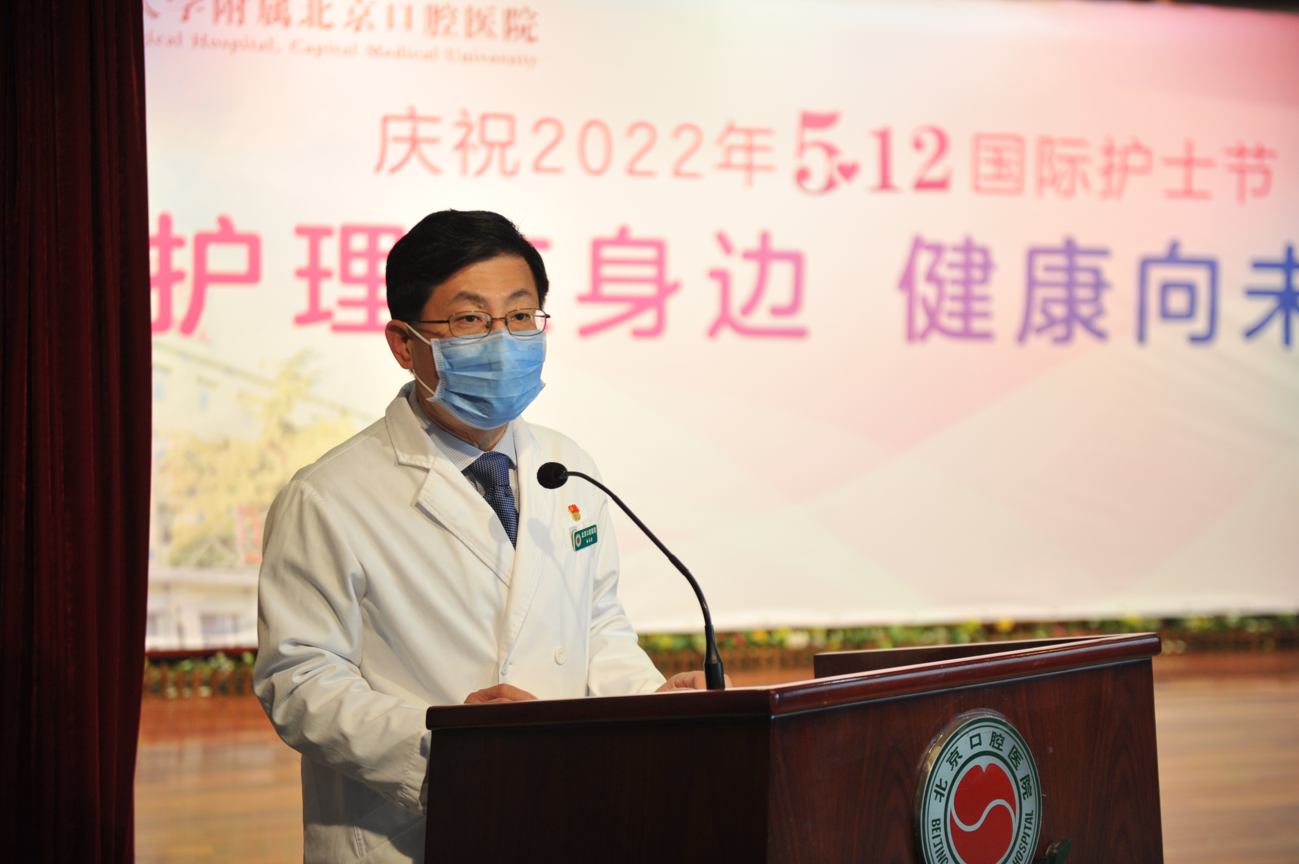 庆祝活动首先由白玉兴院长致辞,白院长向奋战在临床一线的全体护理人员及家人致以节日的问候和诚挚的祝福!并在致辞中表示,我院护理团队是一支敢于争先、不畏艰难、勇于创新、朝气蓬勃的队伍,当前我国疫情防控进入应对奥密克戎病毒变异株流行新阶段,在奥运保障、流调支援、核酸采集、防护培训、一级预检分诊等工作中,口腔护理人员发挥了重大的作用。白院长还强调,随着我们即将面临的新院搬迁,及医院一址多点的发展建设,我院即将进入一个新的发展时期,下一步将以贯彻落实医院“十四五”发展规划为引领,持续推动医院护理工作的高质量发展,希望全院护理人员继续继承和发扬南丁格尔精神,脚踏实地,勤奋工作,与时俱进,不负重托,在技术上精益求精,在服务上主动周到,在态度上耐心负责,以不懈的努力和辛勤的汗水,保障我院护理工作再上新台阶。白玉兴院长的讲话,给护理人员以极大的鼓舞。