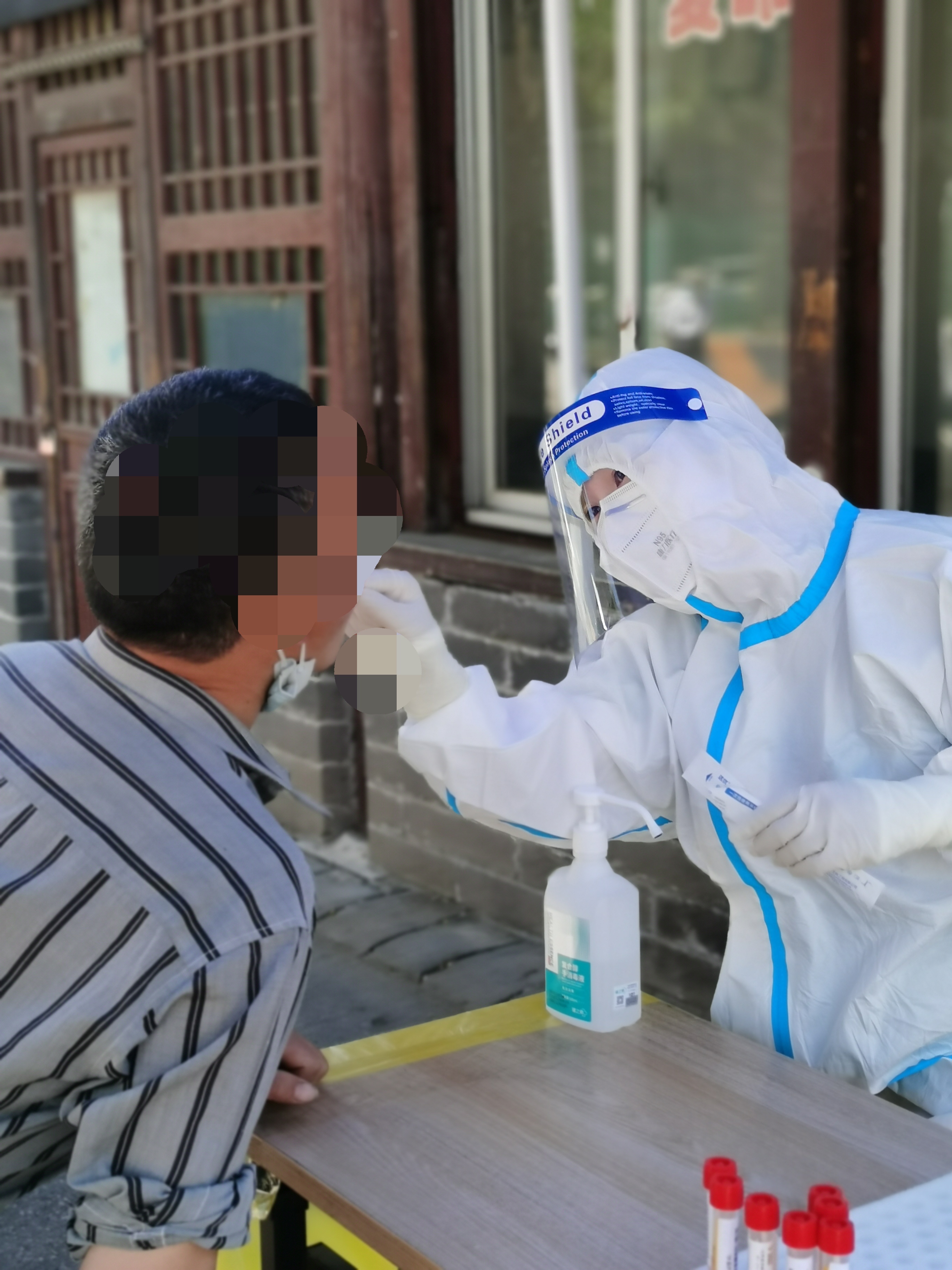 我所在采集点的检测者中,有不能行走的被轮椅推来的96岁高龄老人,有愿意配合我这种“小身材”采集者甘愿单膝跪地的“大个子”,在他们每一声“谢谢”的背后,我也想说一声“谢谢”,感谢他们对 “大白”工作的理解与支持,也感谢他们积极参与配合疫情防控工作。