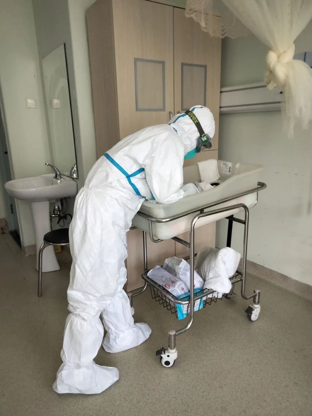 由于新生儿不能和妈妈一起住,我们护士就担负起了小宝宝的各项生活照料和护理工作。这也成了我们在筛查区工作的一部分,特别是喂奶、换尿不湿、记出入量等,这些生活护理必须格外细心,一刻都不能离开孩子身边。