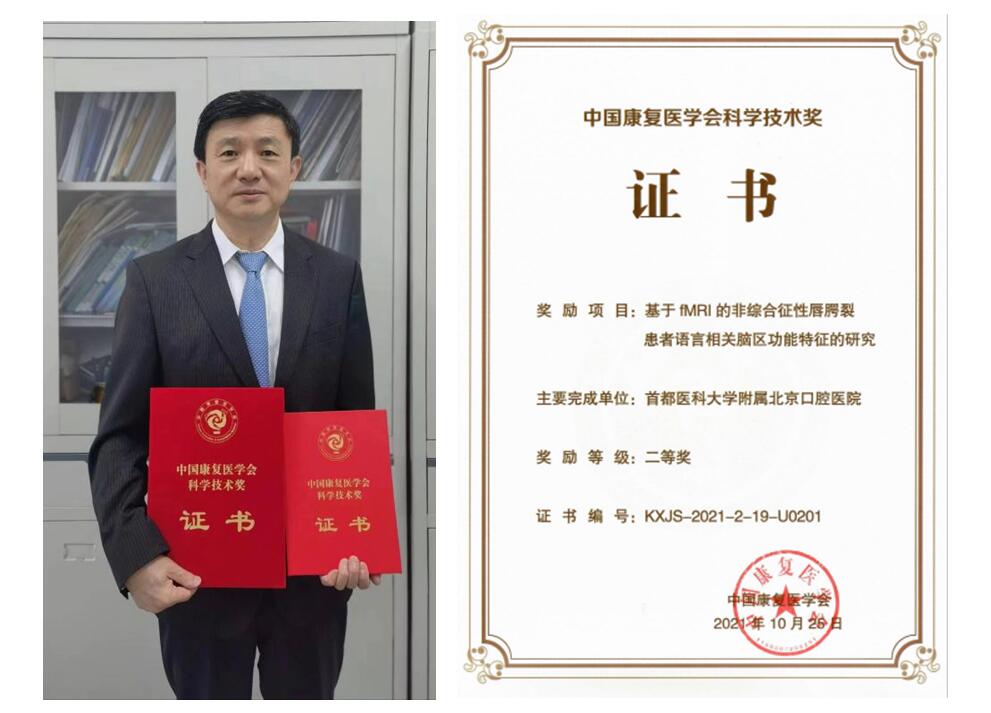 近日,2021年度“中国康复医学会科学技术奖”揭晓,我院口腔颌面整形创伤外科陈仁吉教授团队参评项目《基于fMRI的非综合征性唇腭裂患者语言相关脑区功能特征的研究》经过评审委员会的严格评选,最终荣获“中国康复医学会科学技术奖”二等奖。