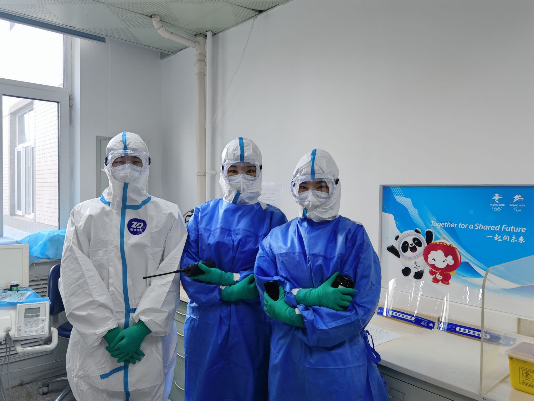 2022年初,举世瞩目的北京冬奥会冬残奥会举办,根据冬奥会战略部署和对口腔医疗保障的需求,我院作为冬奥定点专科医院,接收场馆和涉奥场所的专科闭环内外人员。按照院感防控工作要求,医院要组建医护技团队进入闭环管理。作为一名年轻的技师,李鹏博积极报名,承担了定点医院冬(残)奥医疗保障任务。为了完成使命,他从1月份开始就和其他闭环人员一起练习穿脱防护服,不断重复再重复,力求将细节做到完美,把整个过程刻在脑子里、印在心里。