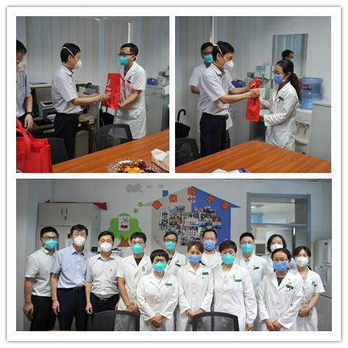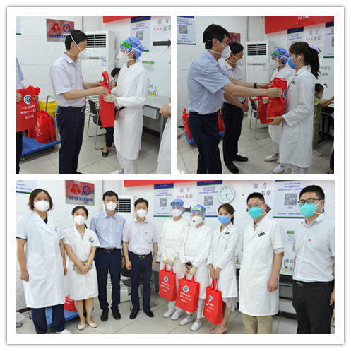 7月22日下午,市医管中心党委常委、副主任谢向辉,市医管中心办公室主任潘峰,市医管中心办公室李泽辉一行在我院党委书记谷水、副书记吴缦莉和副院长杨凯的陪同下,先后走访了口腔急诊综合诊疗中心、接诉即办及预检分诊等科室和岗位,慰问正在紧张忙碌的一线职工。每到一处,市医管中心领导都会与职工沟通交流,详细了解工作情况,嘱咐大家在保证诊疗工作有序开展的同时,注意自身防暑,平安度过三伏天。在场职工们纷纷感谢市医管中心领导的关心和爱护,表示一定会维持良好的身体和精神状态,做好疫情防控和日常诊疗工作。