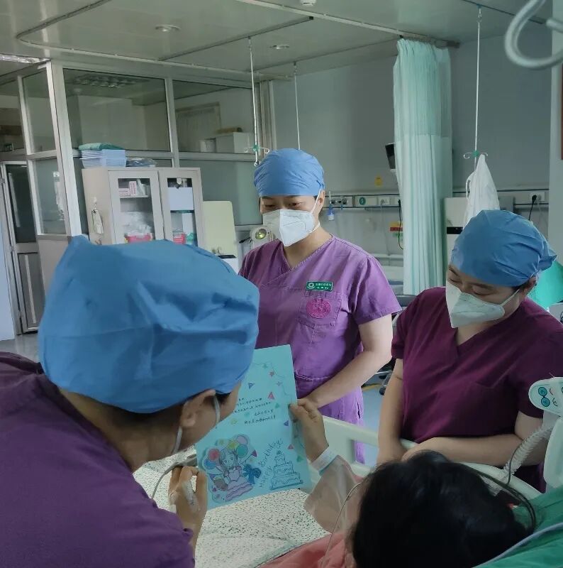小张带着气管插管,不能说话,见她频频点头、热泪盈盈,大家知道,真诚的祝福她全都收到了。相信在护理团队全方位的关爱下,坚强的小张一定会很快好起来的。