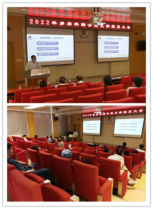 为进一步加强医院党政建设,迎接党的二十大胜利召开, 7月22日中午,党委委员、副院长吴家锋同志以“强化党建引领,推进行风建设”为题为所在党支部党员讲授专题党课。多学科联合党支部党员和积极分子参加了此次党课学习。