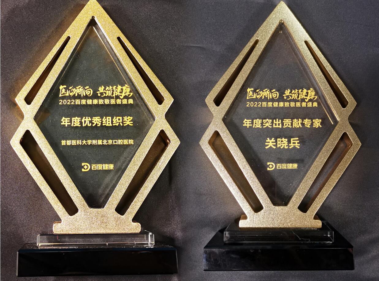 近日,2022百度健康致敬医者盛典在京举办。我院白玉兴教授及口腔正畸科团队再次荣获“年度科普传播奖”、关晓兵教授荣获“年度突出贡献专家”奖、我院荣获“年度优秀组织奖”。