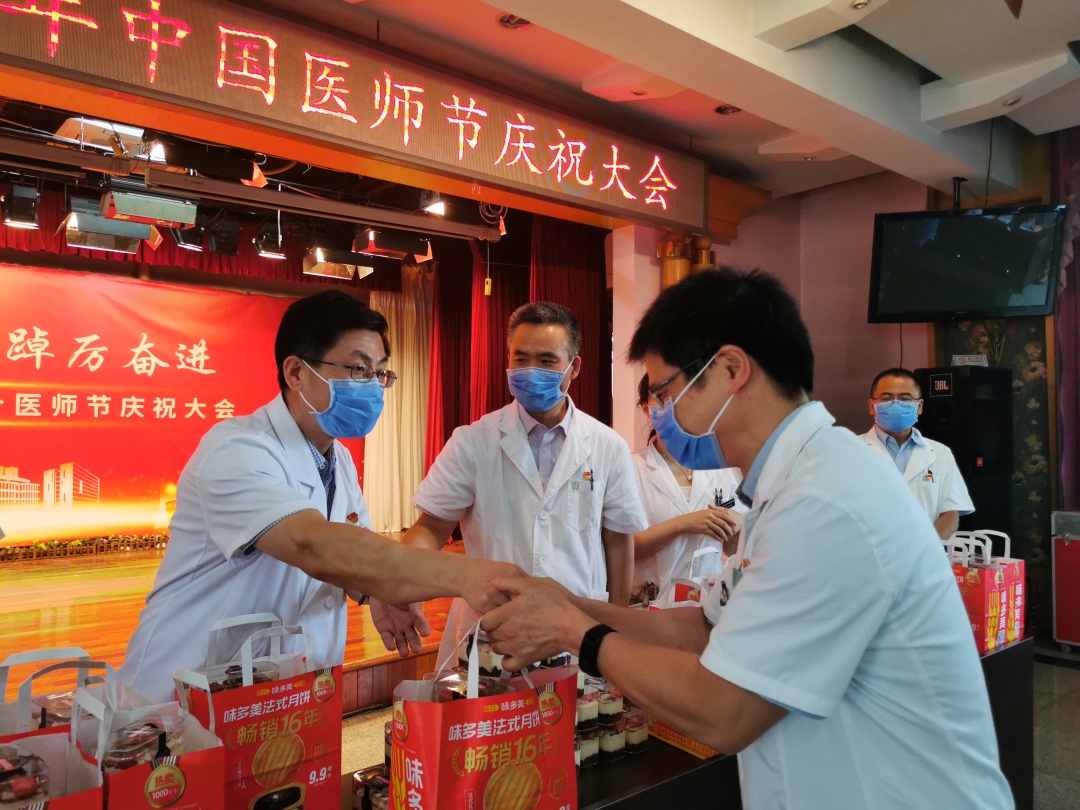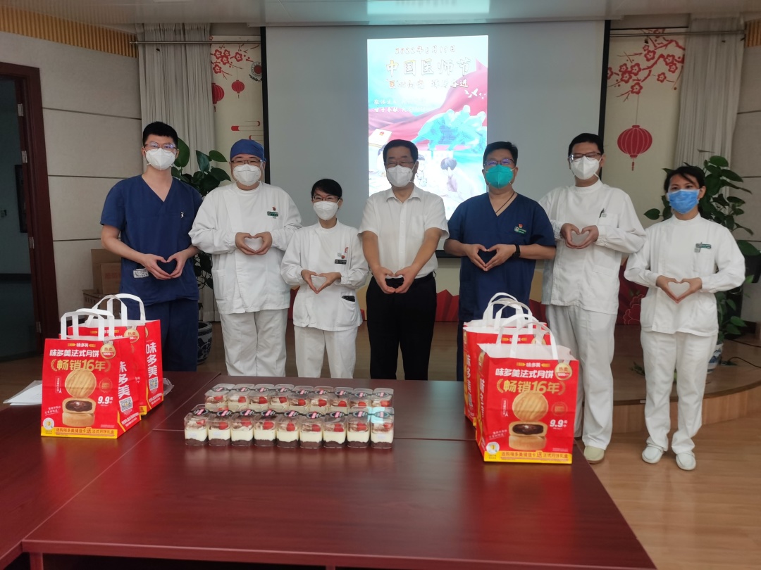 8月18日、8月19日,院领导分别在王府井部、西红门部和天坛部三个院区为全院医师发放节日蛋糕,送节日祝福,共享节日喜悦。