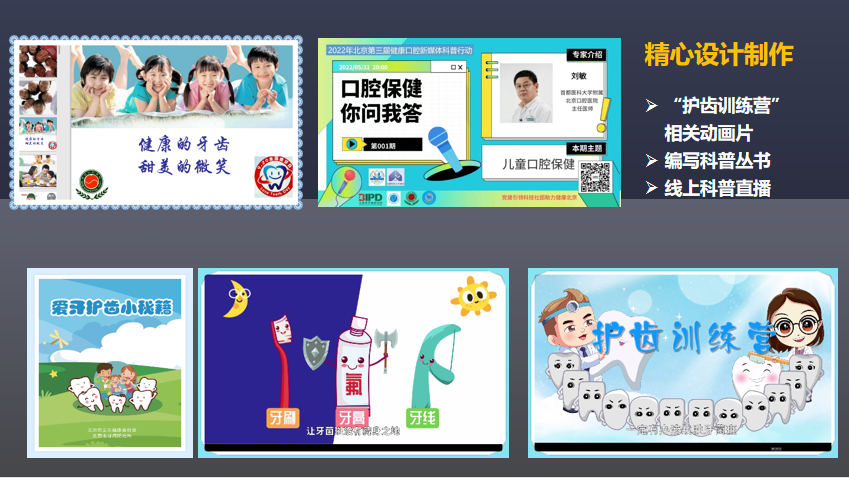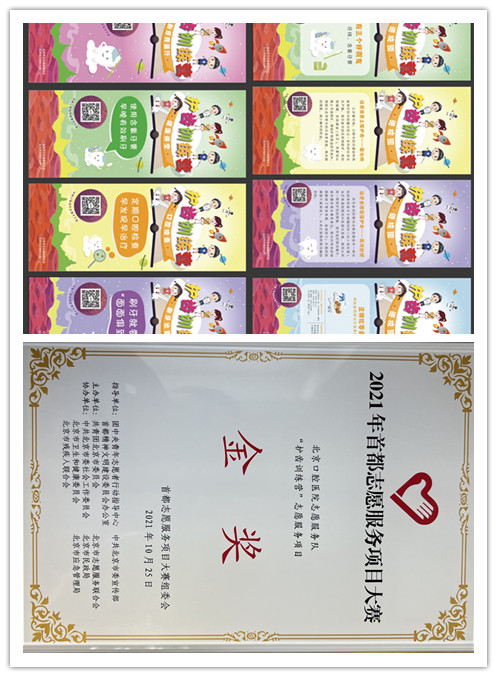 在疫情常态化背景下,依托“北京市牙病防治所”微信公众号,主动发声,积极传播口腔健康科普知识。不断完善公众号科普内容和升级牙防项目服务功能,自主研发标准课件、科普动画,基于项目升级牙防所公众号服务功能,公众号由最初3000多人关注上升到现在的53万余人,增强了医疗卫生行业文化的辐射力。2020年,该项目获评“全国卫生健康行业青年志愿服务项目大赛铜奖”。2021年,该项目获得首都志愿服务大赛金奖。
