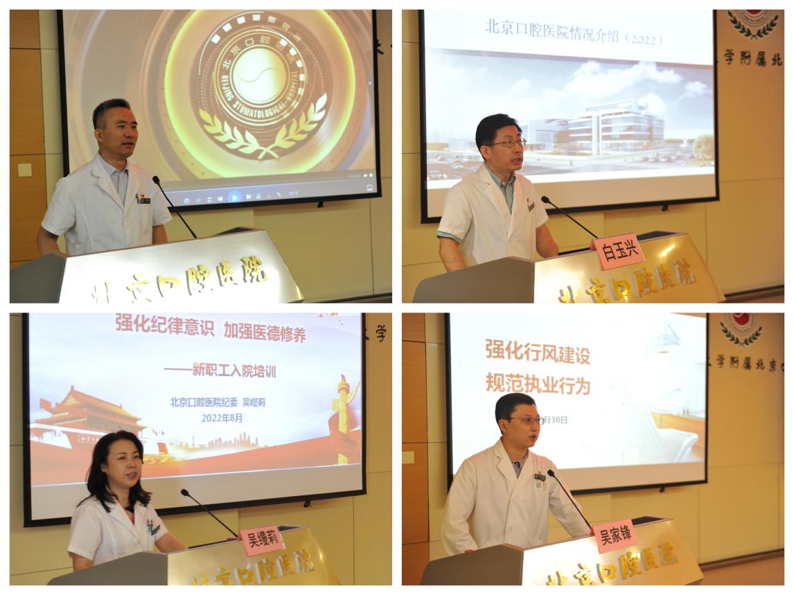 随后的一周时间里,新职工们相互了解促进,完成了为期一周的入职培训。院领导讲堂是培训的必修课:党委副书记、院长白玉兴以我院的“过去、现在、未来”为轴,从历史发展沿革、医者前辈传承,到当前临床概况、科研成果、人才发展,再到未来新院规划、工期进度等多个角度进行了详细介绍,勉励新职工不忘来时路,要秉承“严精勤谨 厚德博才”的院训,不断努力提高自身业务水平和专业素养,为口腔事业发展贡献应有的力量;党委副书记、纪委书记吴缦莉结合自身多年的党团工作经验,做了以“强化纪律意识、加强医德修养”为主题的纪法讲座,讲述了作为一名合格的医务工作者应该具备什么样的医德医风;党委委员、副院长吴家锋列举了多个行风问题案例,提醒新入职职工们要引以为戒、秉持初心,规范执业行为,时刻谨记行风要求,不断强化行风建设。