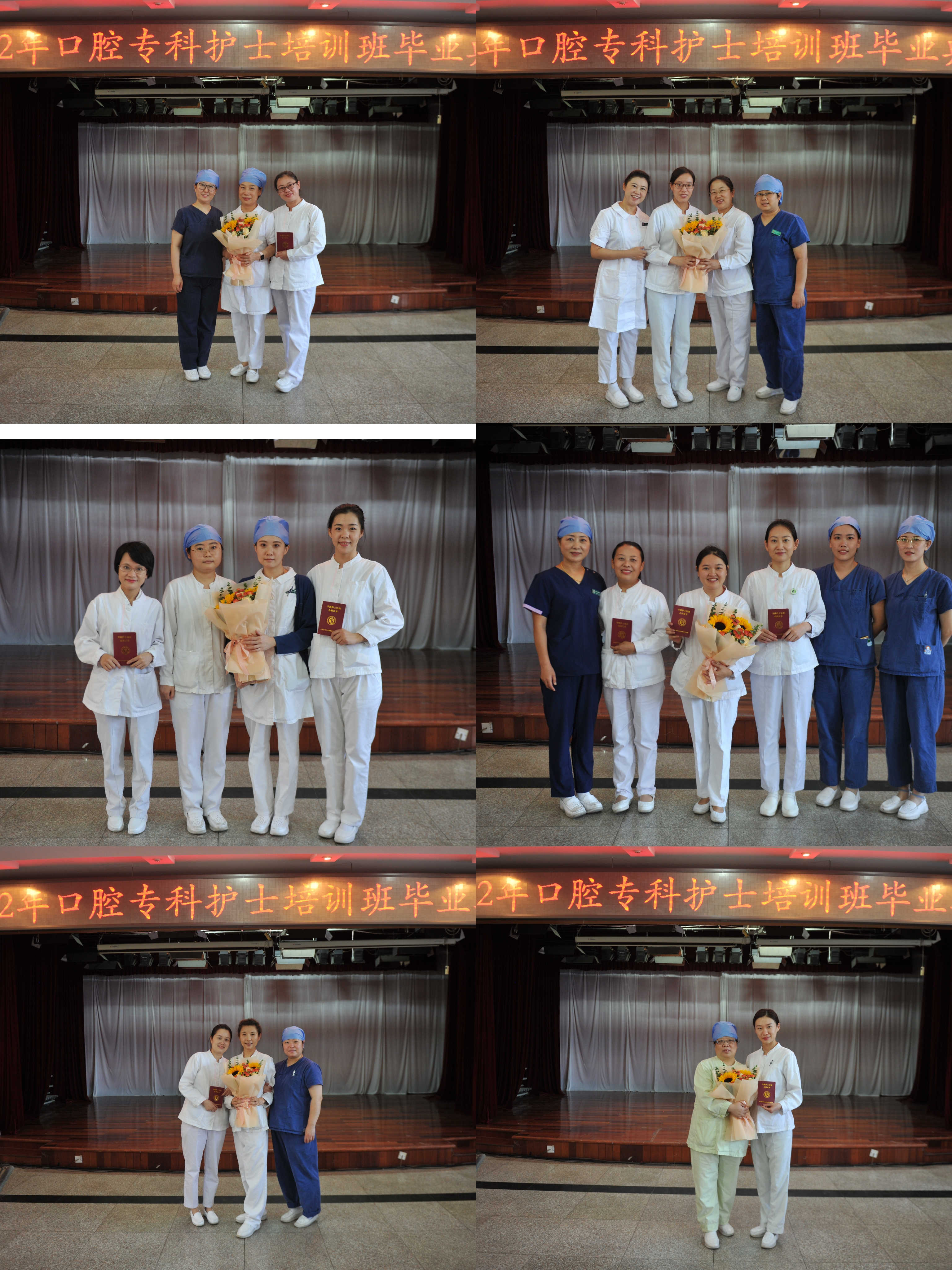 结业典礼在阵阵掌声中圆满结束,学员纷纷与科室护士长及带教老师们合影留念。未来我院将以学员的认可为动力,在中华护理学会教学大纲要求的基础上因材施教,积极探索、持续改进教学方案,使我院口腔专科护士教学水平再上新台阶。