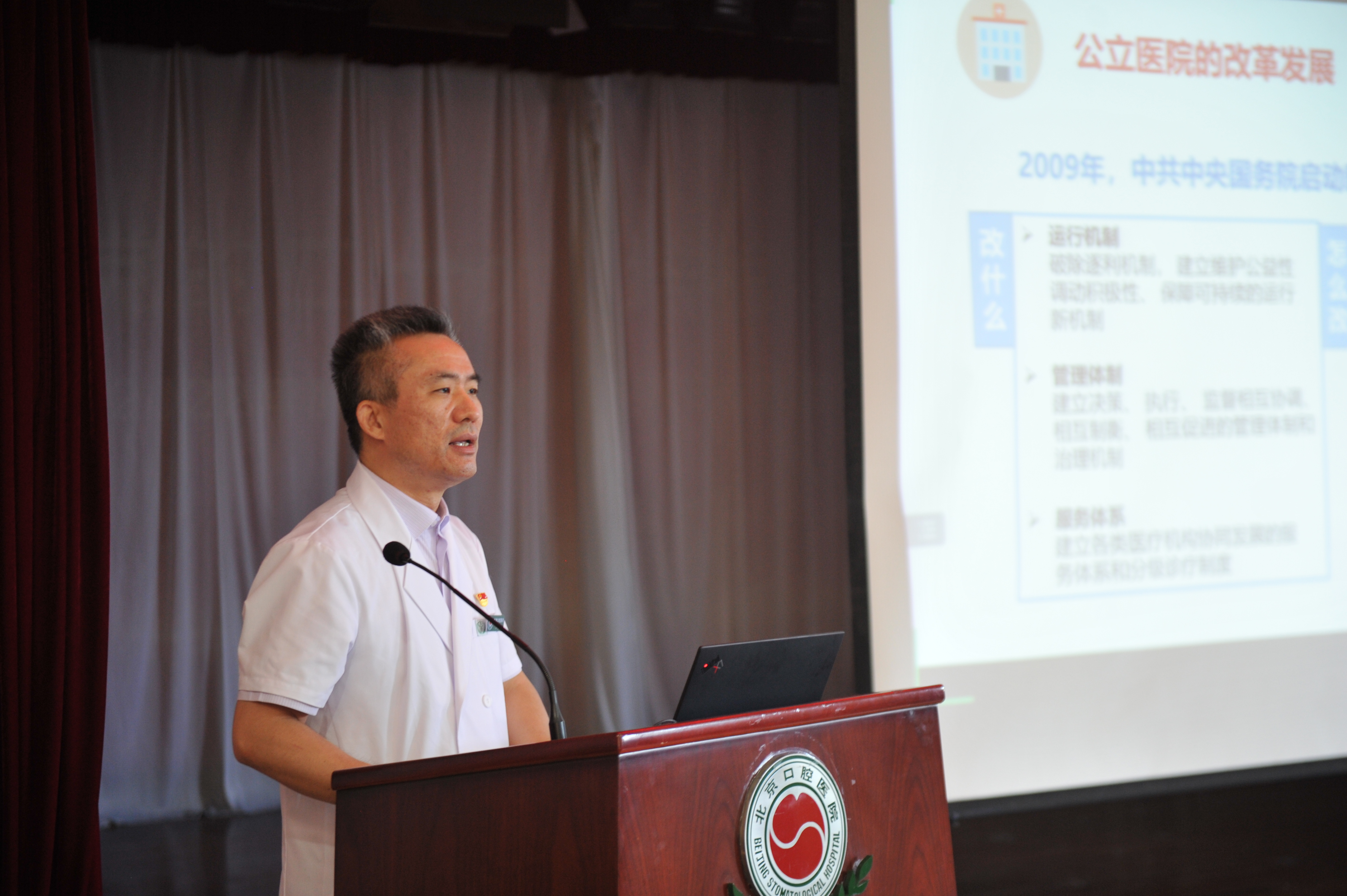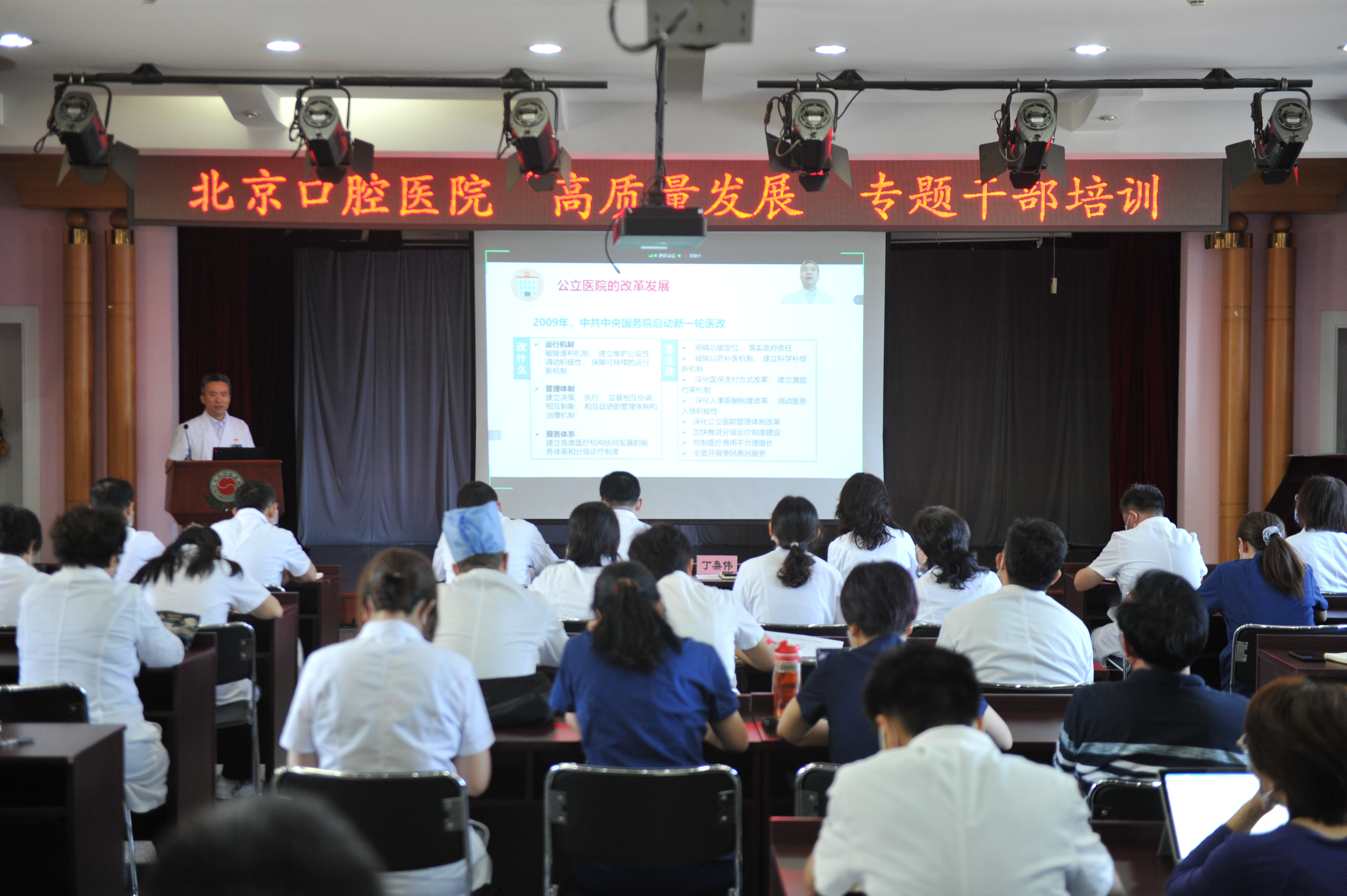 白玉兴院长以国家和北京市有关要求为依据,在客观分析医院现状的基础上,从高质量发展的目标、策略和路径、重点任务、工作计划等方面对我院高质量发展实施方案进行解读,重点对“十项提升行动”进行详细讲解,展示了“以高质量发展引领北京口腔医院新未来”的战略理念。