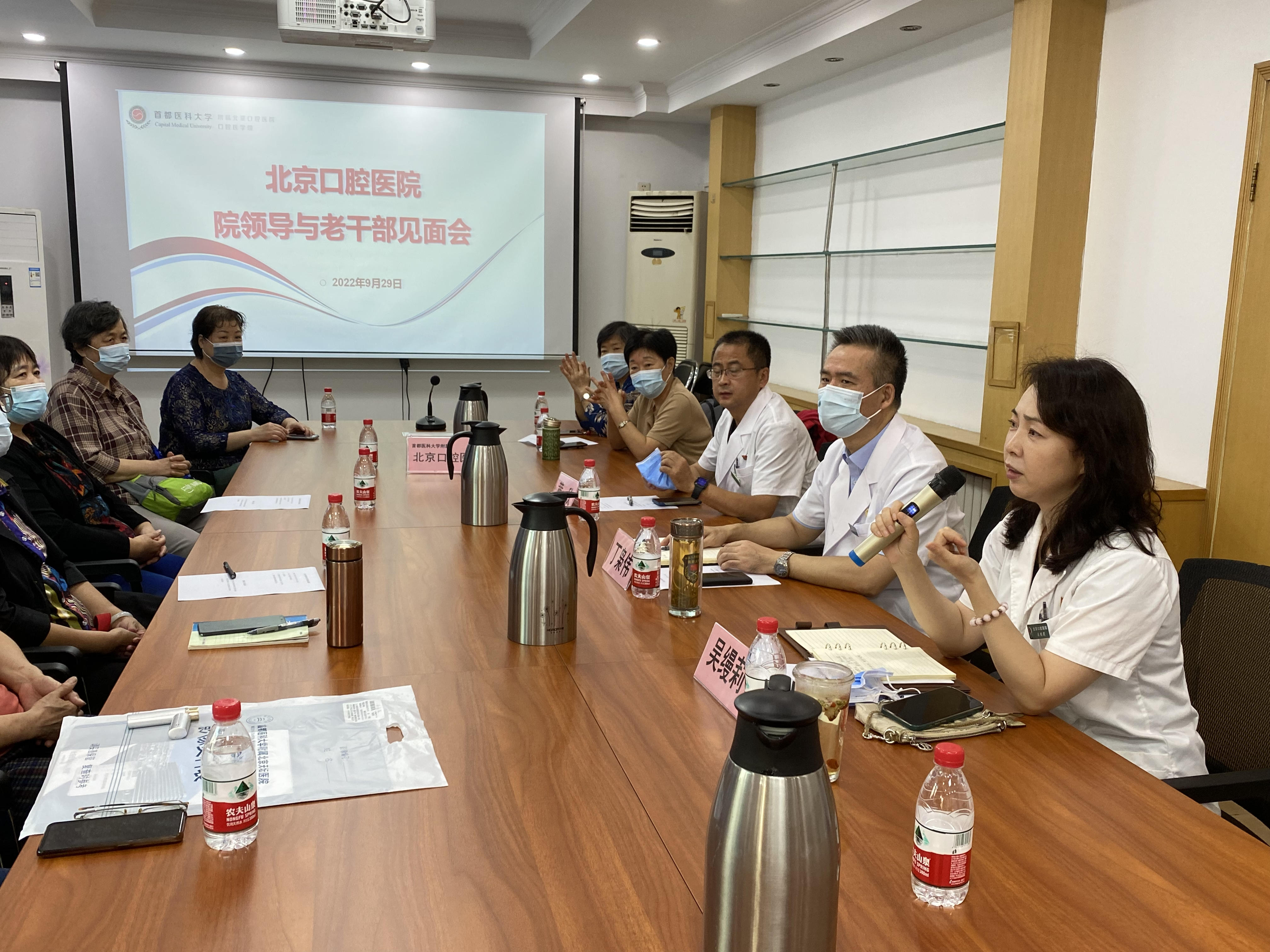 会上,吴缦莉副书记首先向大家介绍了新任党委书记丁枭伟同志,她就丁书记在北京卫生健康系统工作20余年来,在临床诊疗、医院管理、党务工作等方面的经验履历等情况进行了介绍。丁书记随后表示将与全院干部职工一起团结奋斗,持续做好医院医、教、研、防、管各方面工作,特别要以医院迁建为契机,打造医院发展新的平台,努力推进医院高质量发展,创建患者满意、职工幸福、政府信任、社会认可的一流口腔医院。应丁书记邀请,与会的老同志逐一做了自我介绍,大家交流充分,现场气氛温馨融洽。