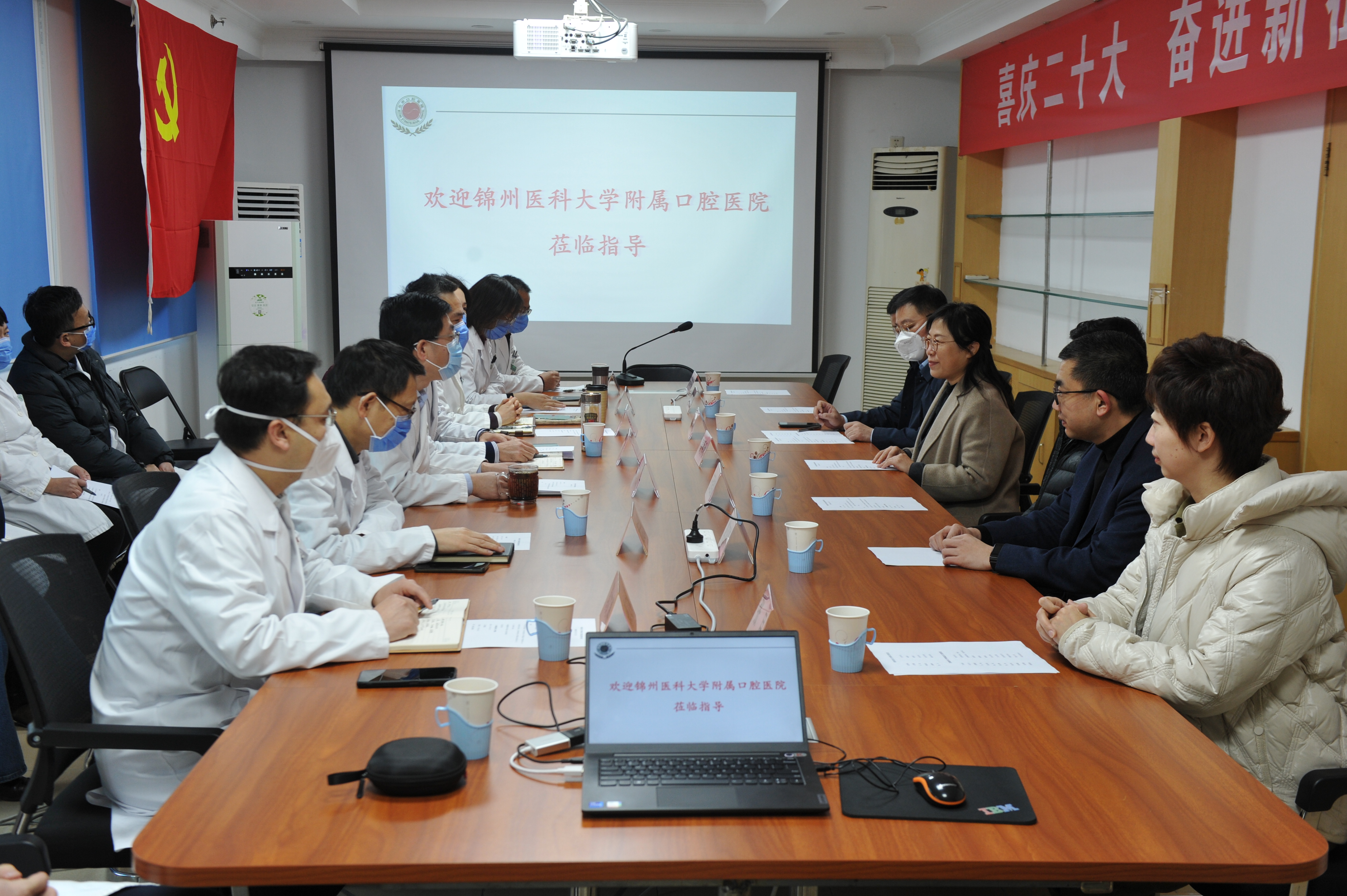 院长白玉兴介绍了我院与会人员,党委书记丁枭伟致欢迎辞,副院长杨凯介绍了我院发展历程及医教研防等各项工作开展情况。高秀秋书记介绍了锦州医科大学附属口腔医院发展情况及综合内科管理运行模式。双方从党建引领医院高质量发展、医院管理、人才培养、学科建设等方面进行了深入交流。白玉兴院长和丁枭伟书记表示,我院新院迁建前,要多走出去学习兄弟院校的管理经验,促进医院高质量发展,推动落实“四个中心”建设。