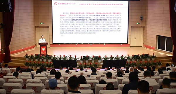 11月17日,院党委在学术报告厅组织学习贯彻党的二十届四中全会精神,党委书记丁枭伟领学。全体领导班子成员、中层干部、党团干部、护士长、优秀年轻干部、统战人士等参会。