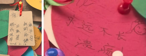 它没有华丽装饰,却承载着患者及家属和医务人员的心愿与祝福,藏着大家对生活的热爱、对亲情的牵挂、对健康的期盼,这些真挚的留言为医院增添了浓浓暖意。