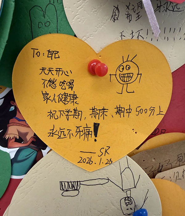 也有孩子写下“2026/加油/开心最重要/成绩不重要”,藏着超越年龄的通透与释然。