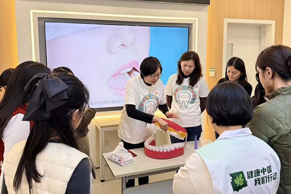 健康科普环节,刘敏围绕“口腔健康与全身健康”,生动讲解了口腔疾病预防及护理保健等知识;朝阳区疾控中心(北京市朝阳区卫生健康监督所)第一党支部支委杨秋带领大家互动学习手指操,传递主动健康理念。