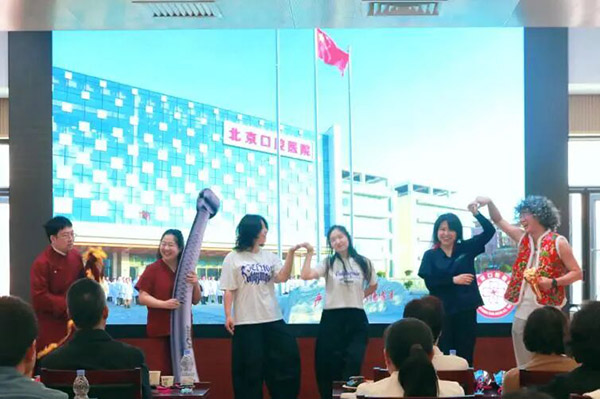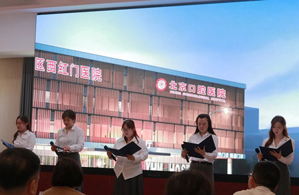 北京口腔医院党委副书记陈伟、副院长杨凯、工会主席黄欣与西红门医院副院长杨守兰等领导、嘉宾陆续登台,为西红门部送祝福。
