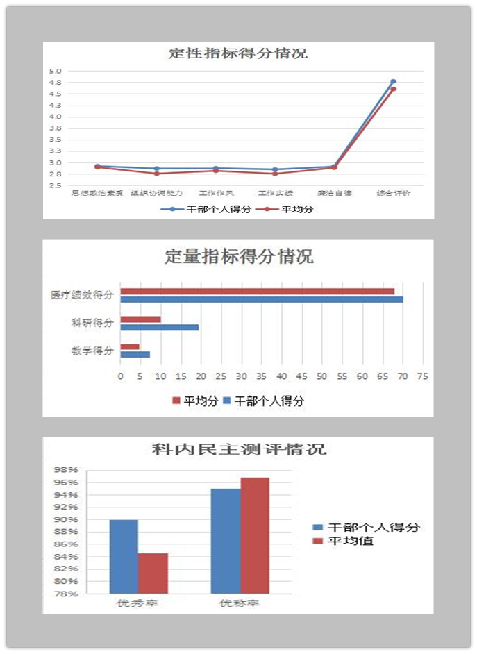 为了通过测评反馈促进干部改进工作,能力提升,素质发展的作用,院党委对测评数据通过多种图表进行定量、定性指标的可视化分析,使得测评结果更加直观、全面的反映给本人。党委书记郑东翔、党委副书记吴缦莉分批次与天坛部、王府井部60余位中层干部逐一进行了谈心谈话,结合考核测评结果以及科室谈话情况,围绕中心工作、与每名中层干部以心交心、坦诚相见,结合岗位特点对考核结果进行分析沟通,既对工作成效给予充分肯定,又诚恳地指出存在问题和不足,提出改进建议,有针对性的征求了大家对中层干部选拔、任用、培养、培训等方面的意见建议。大家反映考核评价体系相对客观全面,直观的分析图表、面对面的谈话分析的反馈形式,有助于加强对岗位责任及自身差距的认知,明确了改进工作的方向;大家对干部考核指标、干部管理和培养等方面提出了意见和建议。