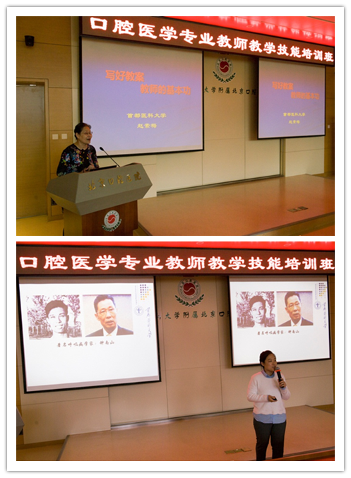培训班上,牙体牙髓科主任侯本祥针对口腔医学考试命题规范进行了讲解;牙体牙髓科副主任张琛结合临床病例讲解了牙髓病、根尖周病的诊疗规范;口腔放射科主任祁森荣讲解了影像学在口腔医学中的应用;首都医科大学赵素梅副教授以讲课比赛获奖教案为实例讲解了教案的规范书写;“第六届全国医学院校教师教学基本功比赛”临床组一等奖和最佳教案获得者首都医科大学宣武医院李艳老师做了示范讲课,并分享了自己在教学设计和教学演示方面的经验和体会。专家们的讲课内容丰富、讲解形象生动,受到参会教师的欢迎。