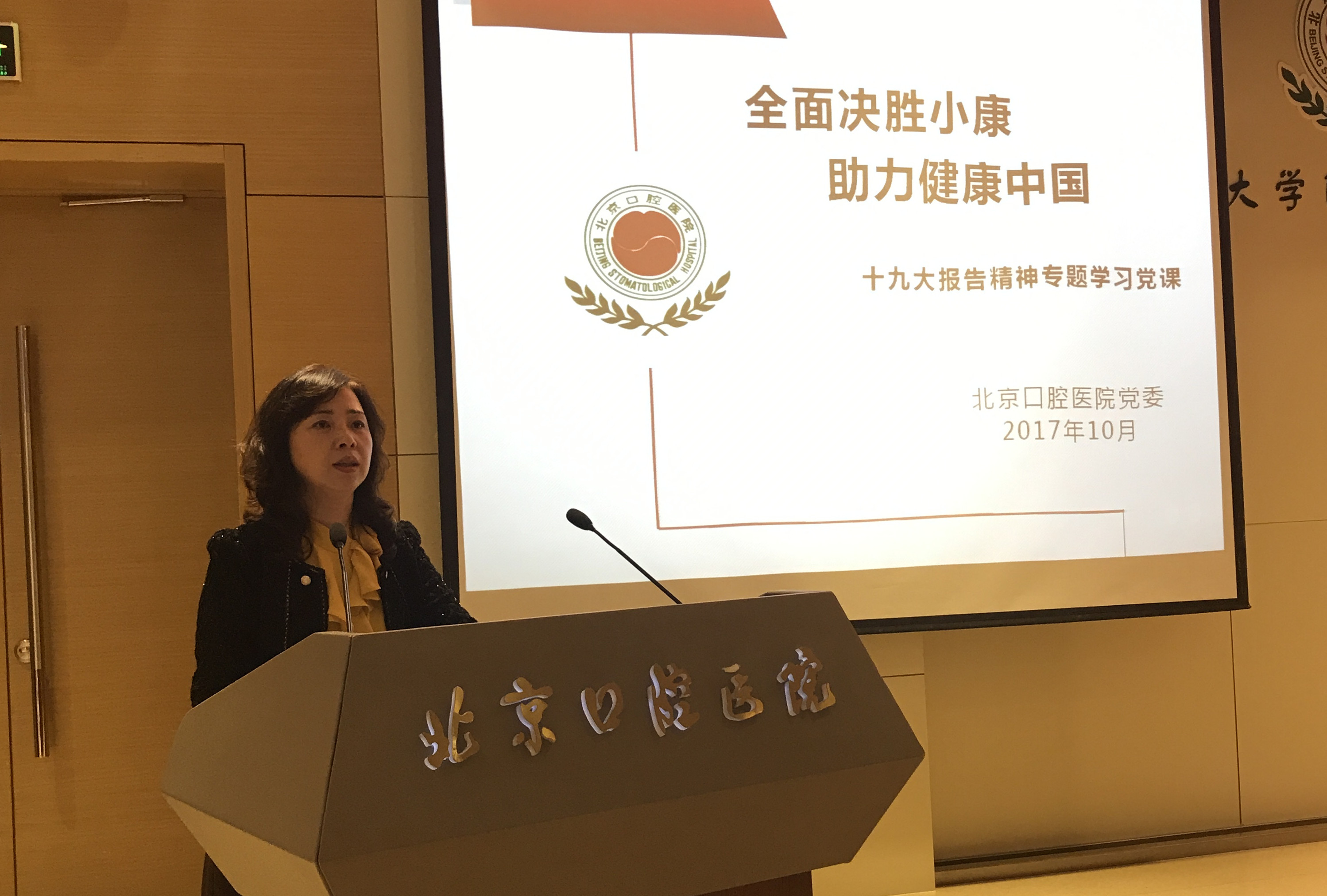 吴缦莉副书记首先就党的十九大的大会主题、报告结构等内容作出讲解,引导党员干部整体把握会议情况和主要精神。随后她结合医院中心工作,围绕健康中国战略做重点解读,讲解中央在深化医药卫生体制改革、建立中国特色基本医疗卫生制度、健全现代医院管理制度等方面的决策与部署,并传达我院在京津冀发展战略、非首都功能疏解、医药分开综合改革等综合背景下落实十九大会议精神的工作规划与计划,要求广大党员在今后的工作中立足岗位,服务大局,为健康中国战略的实施和医院发展贡献力量。