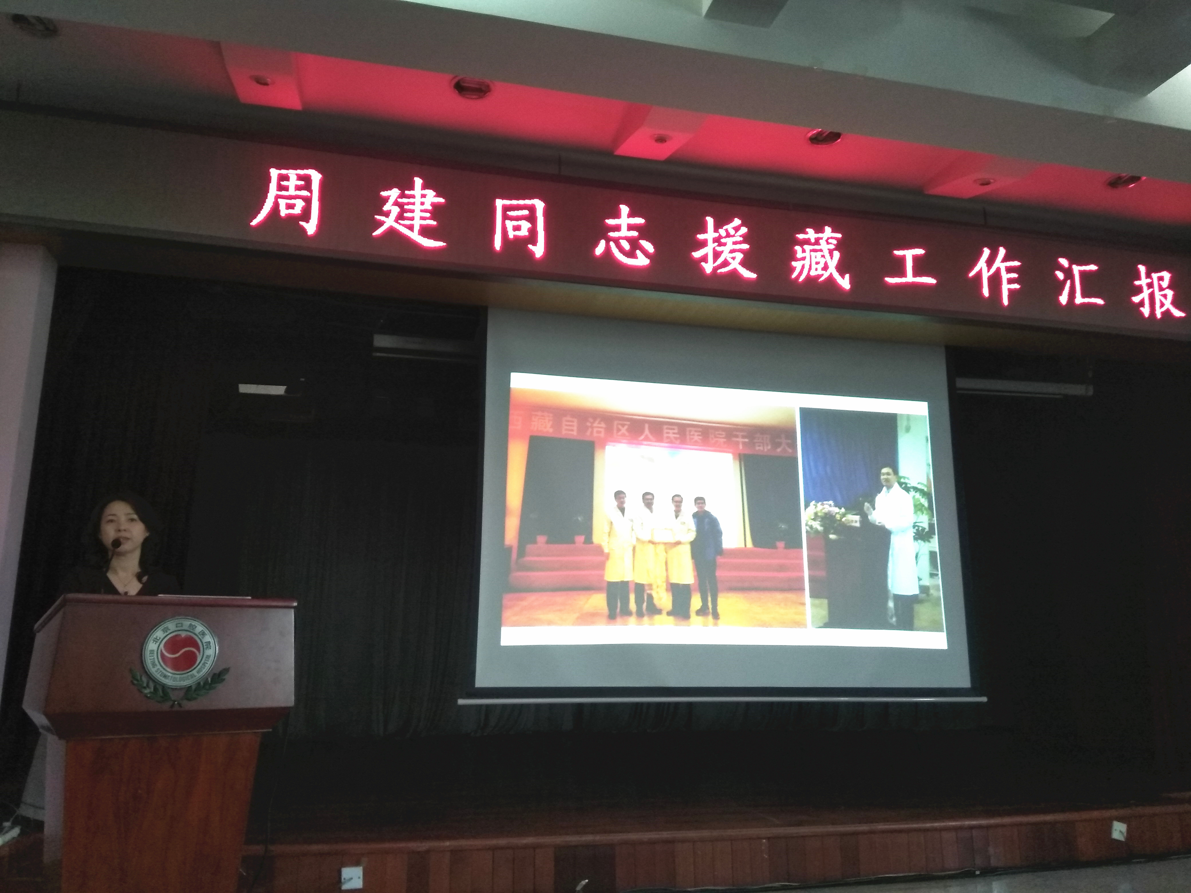 会议最后,吴缦莉副书记总结发言时说到,这是我院首次入选“博士服务团”、承担援藏工作任务,周建同志勇挑重任,克服种种困难,给西藏自治区人民医院带去了先进的医疗技术和管理理念,不但圆满完成组织交给的任务,也实现了自我的成长,大家要学习周建同志无私奉献的大爱情怀和勇于担当的责任意识,立足岗位实际,努力做好本职工作,迎难而上、大胆作为,为医院的各项事业发展添砖加瓦,为建设“健康中国”贡献力量。