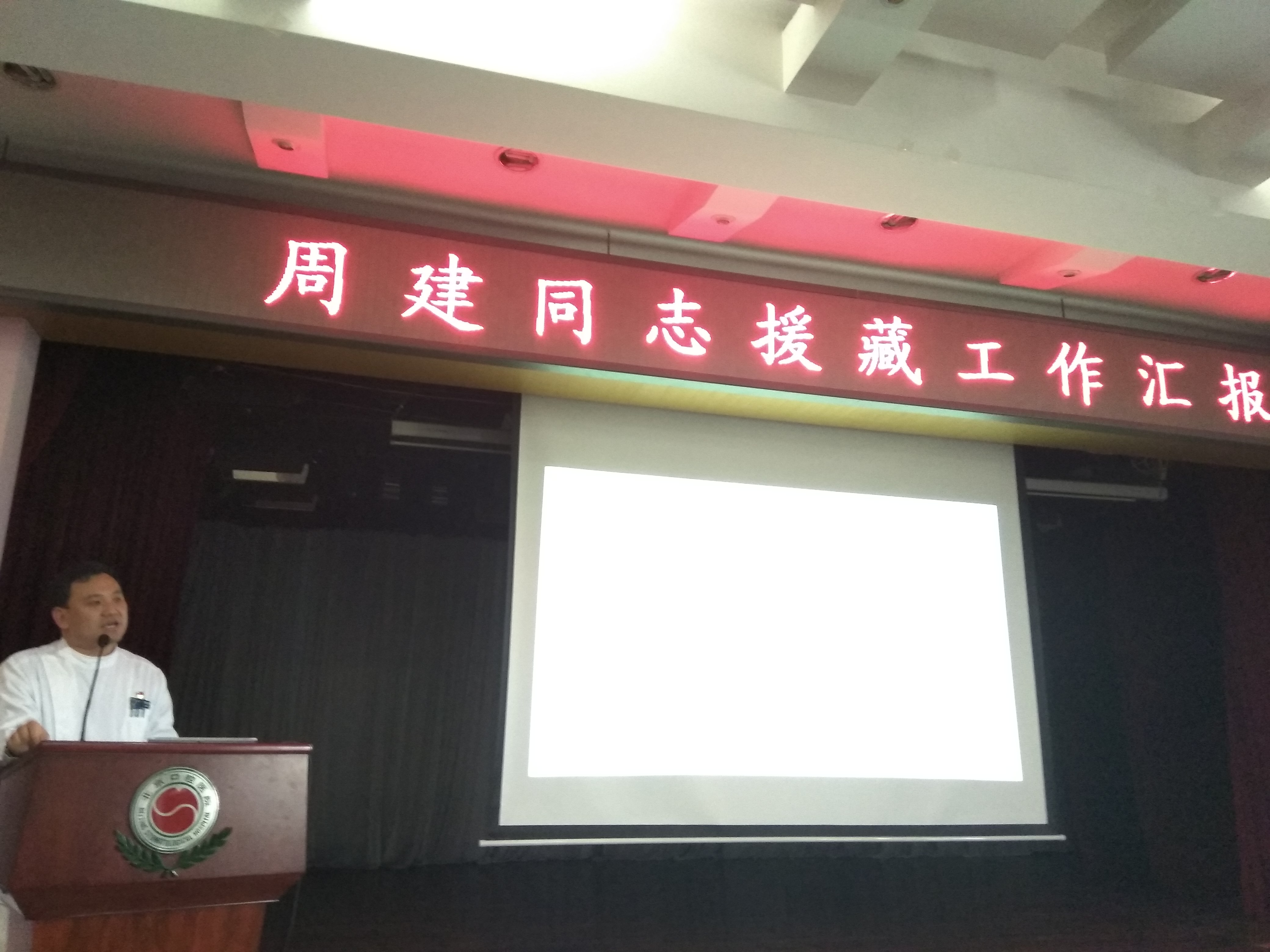 随后,周建同志从援藏期间自己感受深刻的三个故事引入,用深情朴实的语言、真实生动的图片从藏区情况、工作实绩、工作感受等方面分享了自己在西藏自治区人民医院的工作生活和所思所想所得;他对援藏工作重要意义的深刻认识,对藏区口腔事业发展的奉献付出,对当地少数民族群众的深厚感情,深深打动了在座的每一个人。大家均表示,听了周建同志的报告,对援藏工作有了更加深刻直观的认识,也对如何更好完成本职工作有了更加深入的思考,是一次难得的精神洗礼。