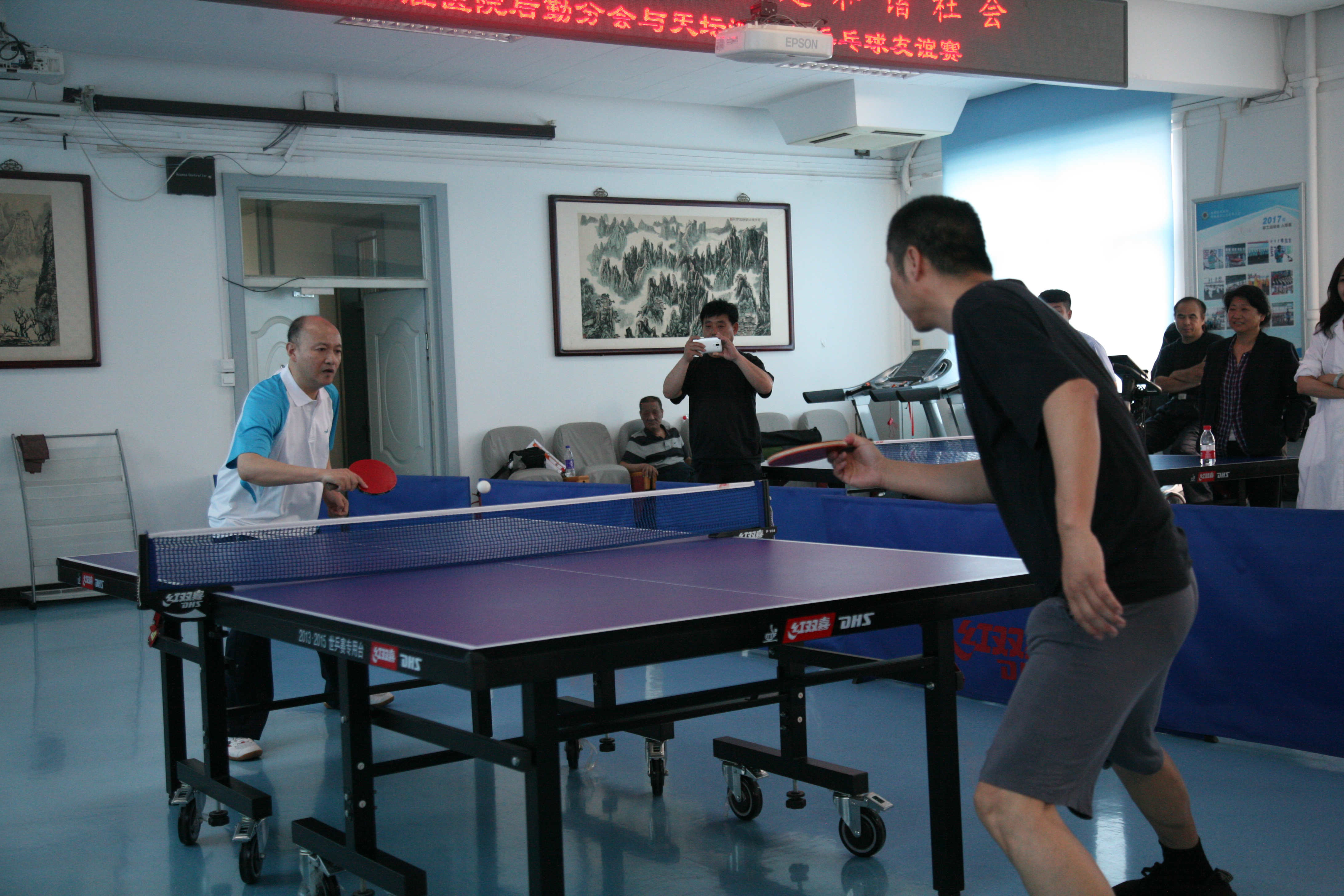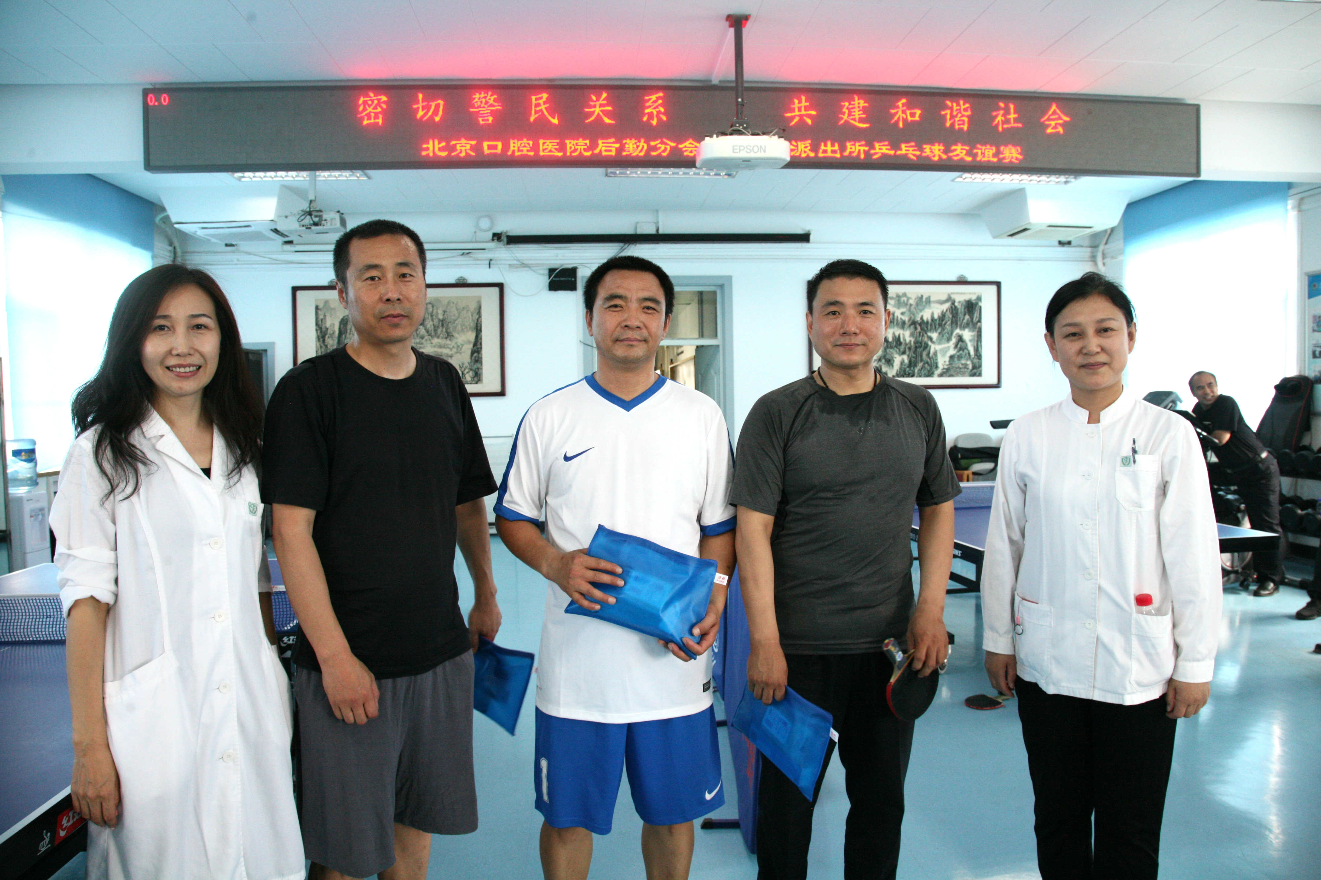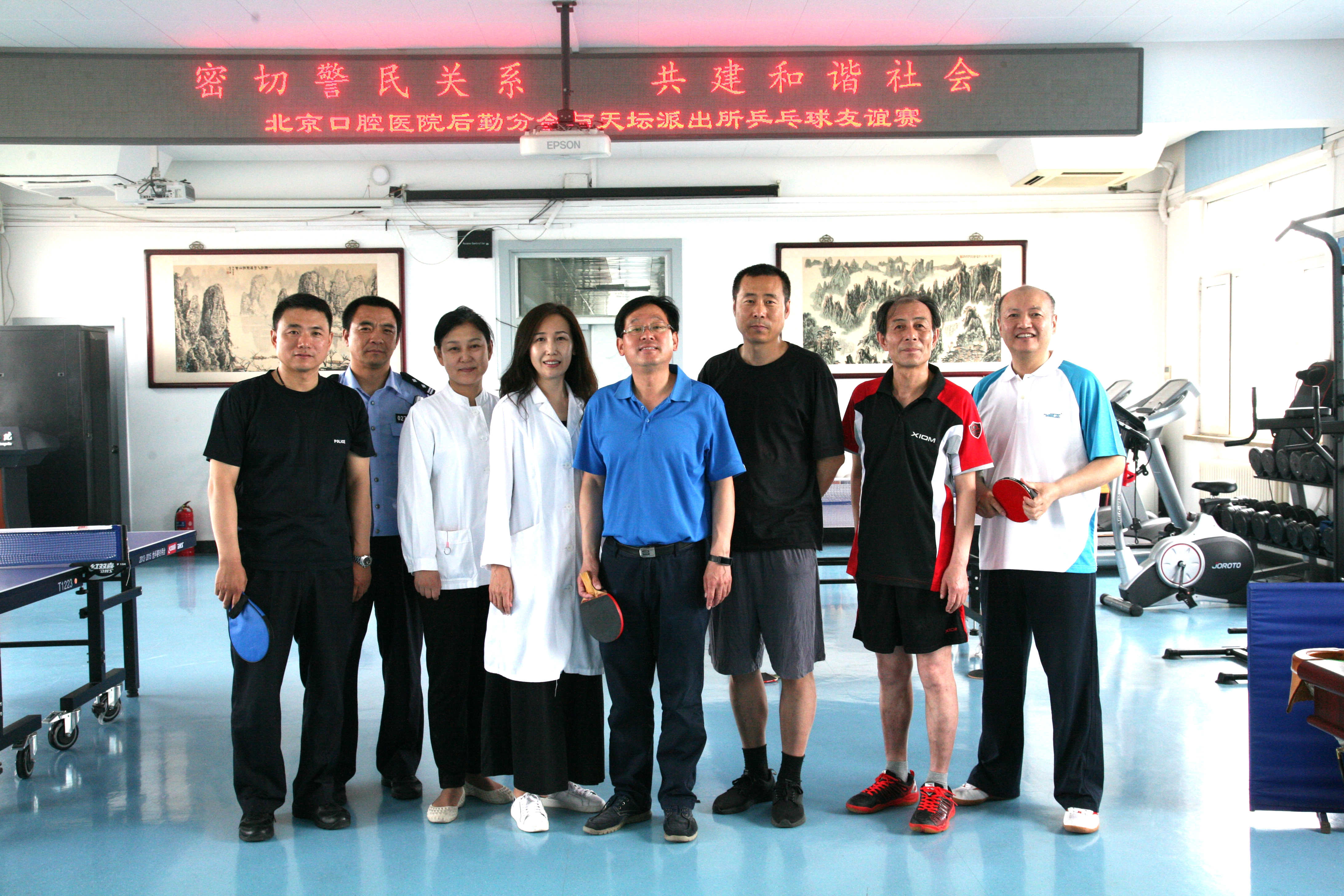 5月16日中午,我院后勤分会职工与天坛派出所民警在我院门诊五楼职工之家活动室开展了“密切警民关系,共建和谐社会”主题共建活动——乒乓球友谊赛。