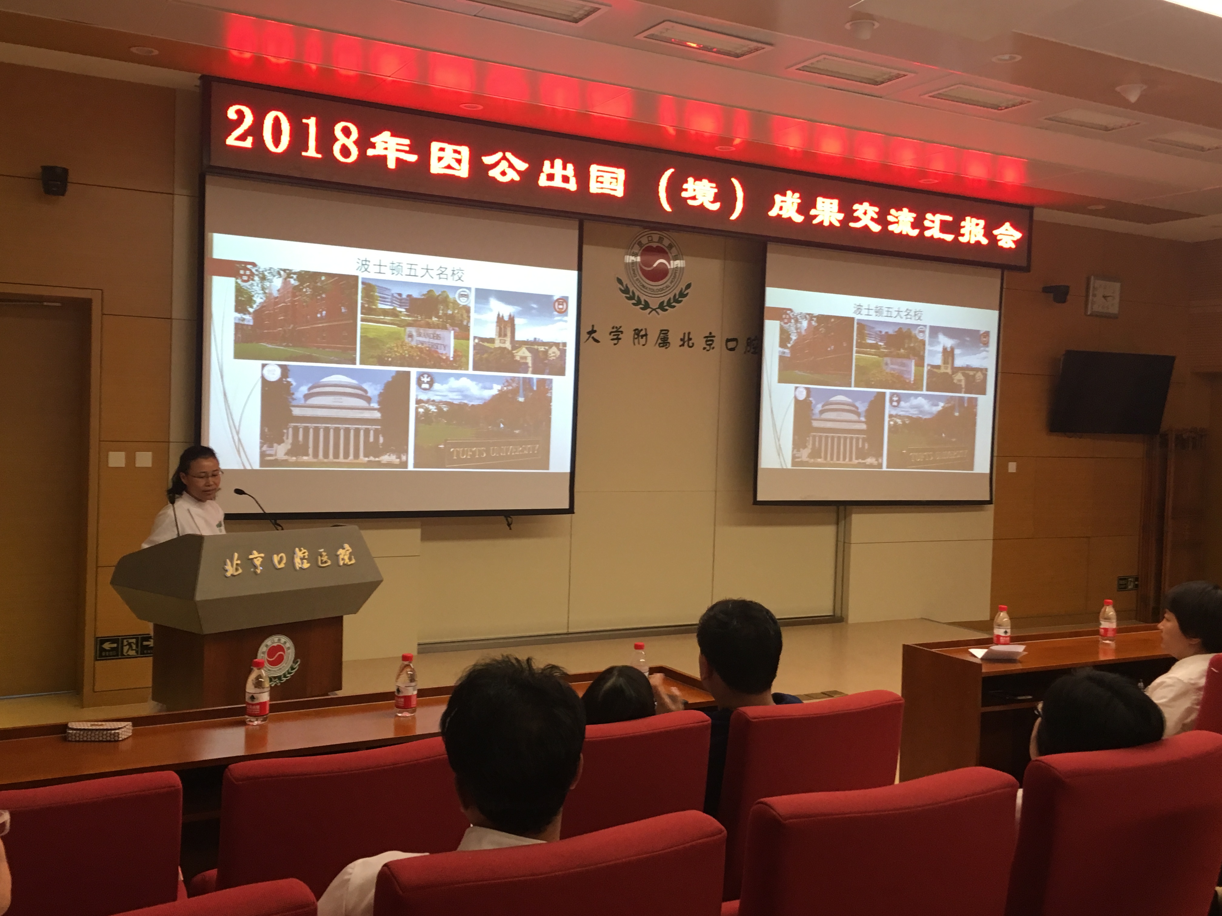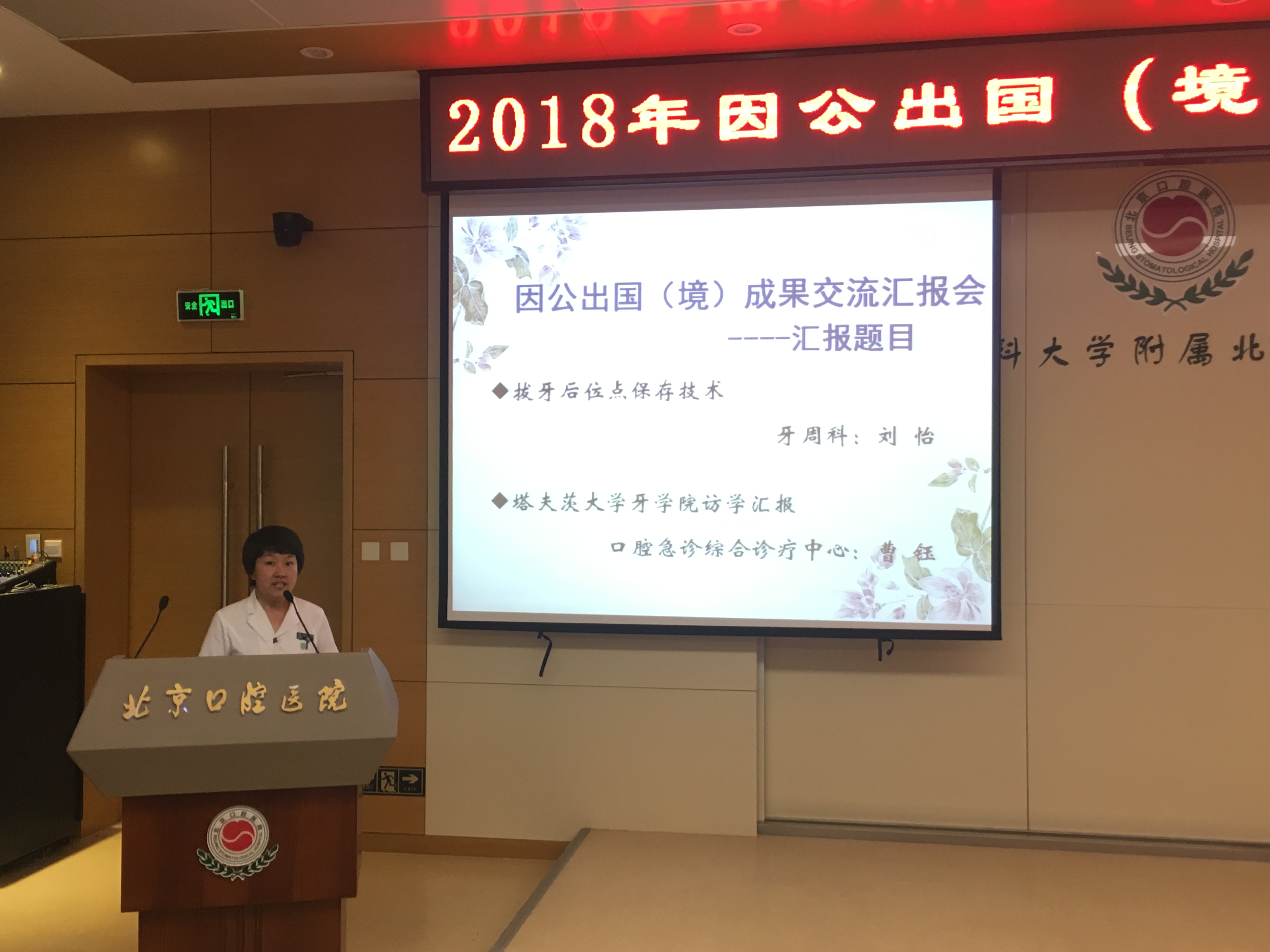 刘怡主任介绍了2017年在美国宾夕法尼亚大学为期3个月的牙周临床培训经历及该校学生培养模式,重点向与会人员介绍了拔牙后位点保存技术;曹钰医师分享了在美国塔夫茨大学牙学院研修一年的心得体会,讲述了她开展的课题研究及参加国际会议、临床技术培训的情况,为与会人员带来了实实在在的成果展示。