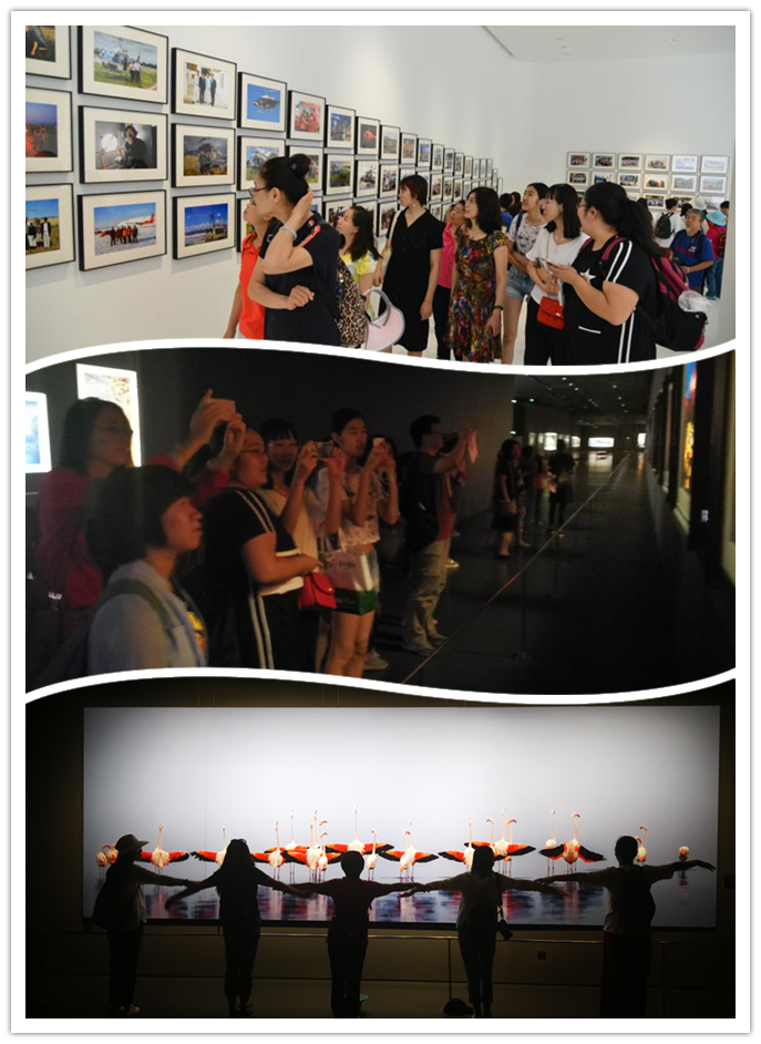 随后大家进入摄影艺术馆参观。艺术馆分为自然风光、野生动物和神奇的纳纯湖等三部分主题。分别展出了罗红先生在非洲、南极、北极、北美洲、中美洲和北欧拍摄的自然风光和野生动物照片。展出作品从奇特的角度,运用不同色彩和技巧,神奇展现了人与自然的和谐之美,以及大自然鬼斧神工、神奇壮丽的景色。所有作品或色彩艳丽、或壮丽震撼、或野趣丛生,全部高精度、大画幅制作,带来令人震撼的观展体验,让观众宛若置身大自然,直面万物与生灵的澎湃壮丽。大家对展出的作品仔细探究并热烈讨论,纷纷表示此次观展视觉和身心都受到了震撼。
