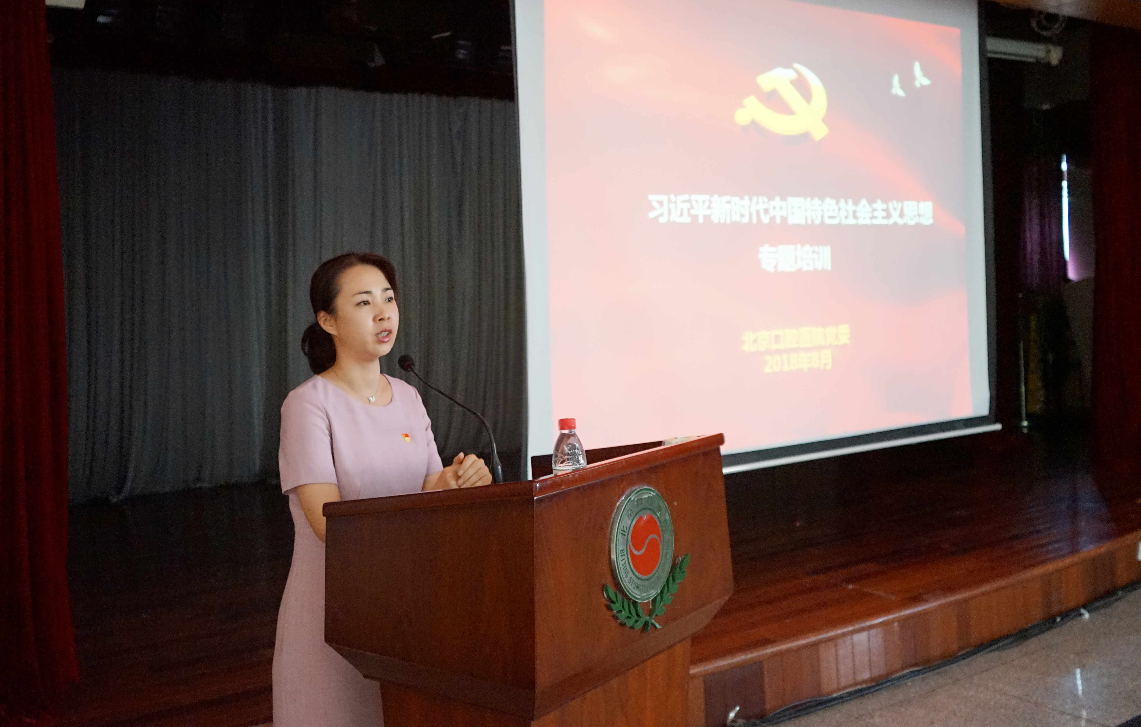 为深入学习贯彻党的十九大精神和习近平新时代中国特色社会主义思想,引领全院干部职工学习新思想、明确新征程、展现新作为,8月3日,我院党委组织习近平新时代中国特色社会主义思想专题学习,邀请市高等院校十九大精神宣讲团成员、市委讲师团特约报告人、首都师范大学郭海燕教授来院授课。院领导、各支部党员、积极分子及统战人士参与培训,培训会由党委副书记吴缦莉主持。