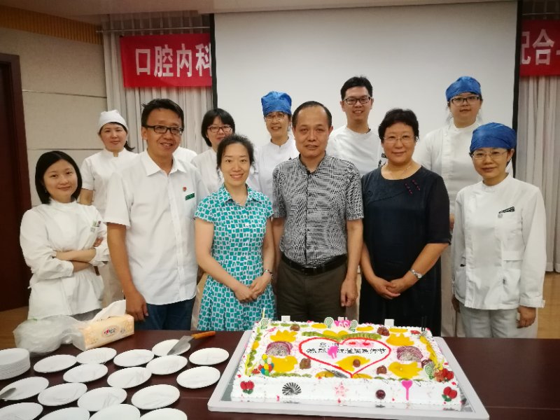在天坛部食堂门口,副院长厉松亲自为医务人员切分蛋糕;与此同时,副院长刘淑敏、副院长刘静明、医务处处长苏静一同在王府井部六层会议室为医务人员切分蛋糕,分享节日喜悦。