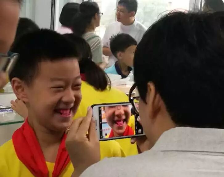 看着镜子中牙齿上被染色的残留菌斑,小朋友和家长纷纷大笑,欢笑之余大家都知道了刷牙的难点和重要性。