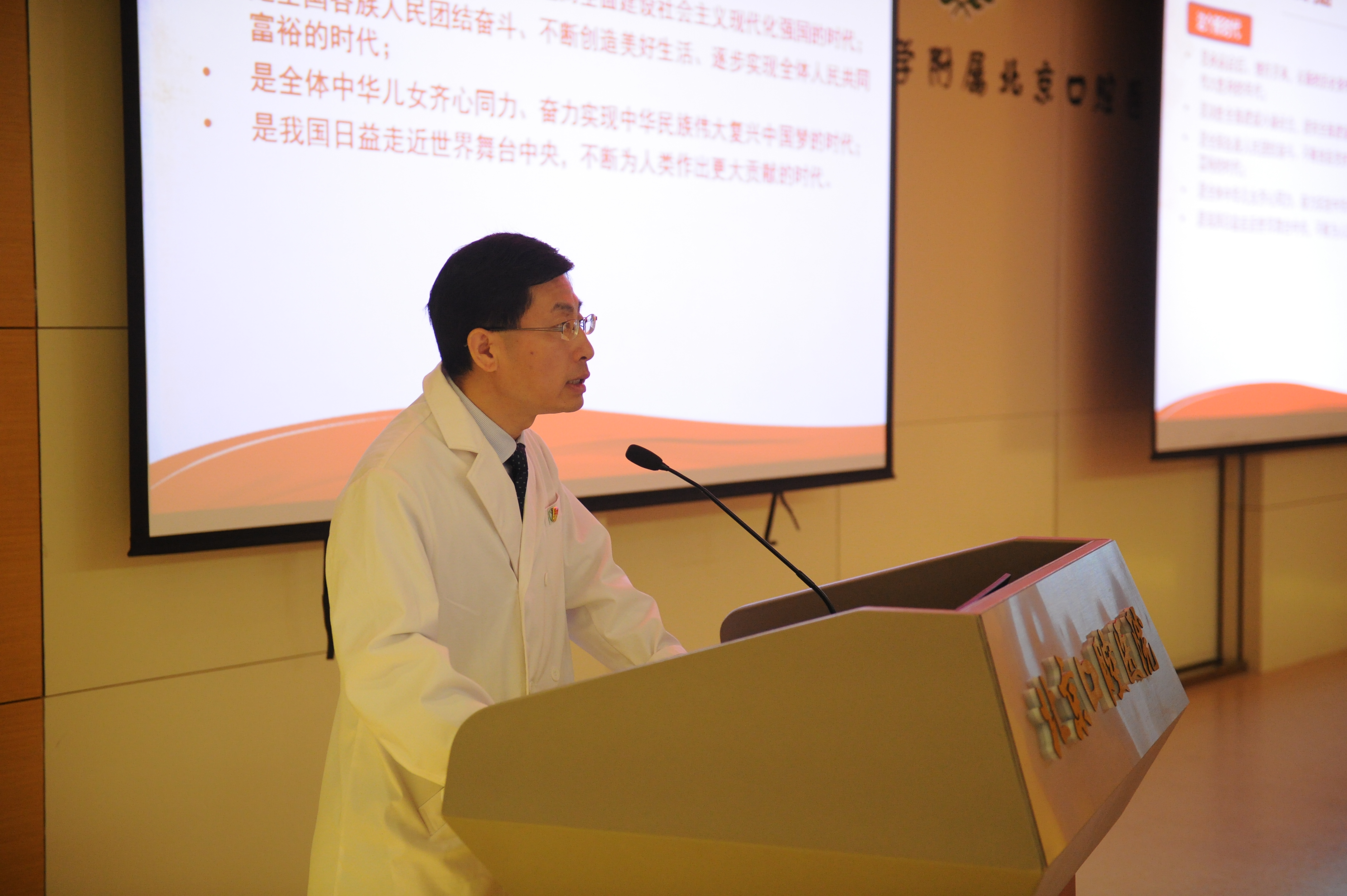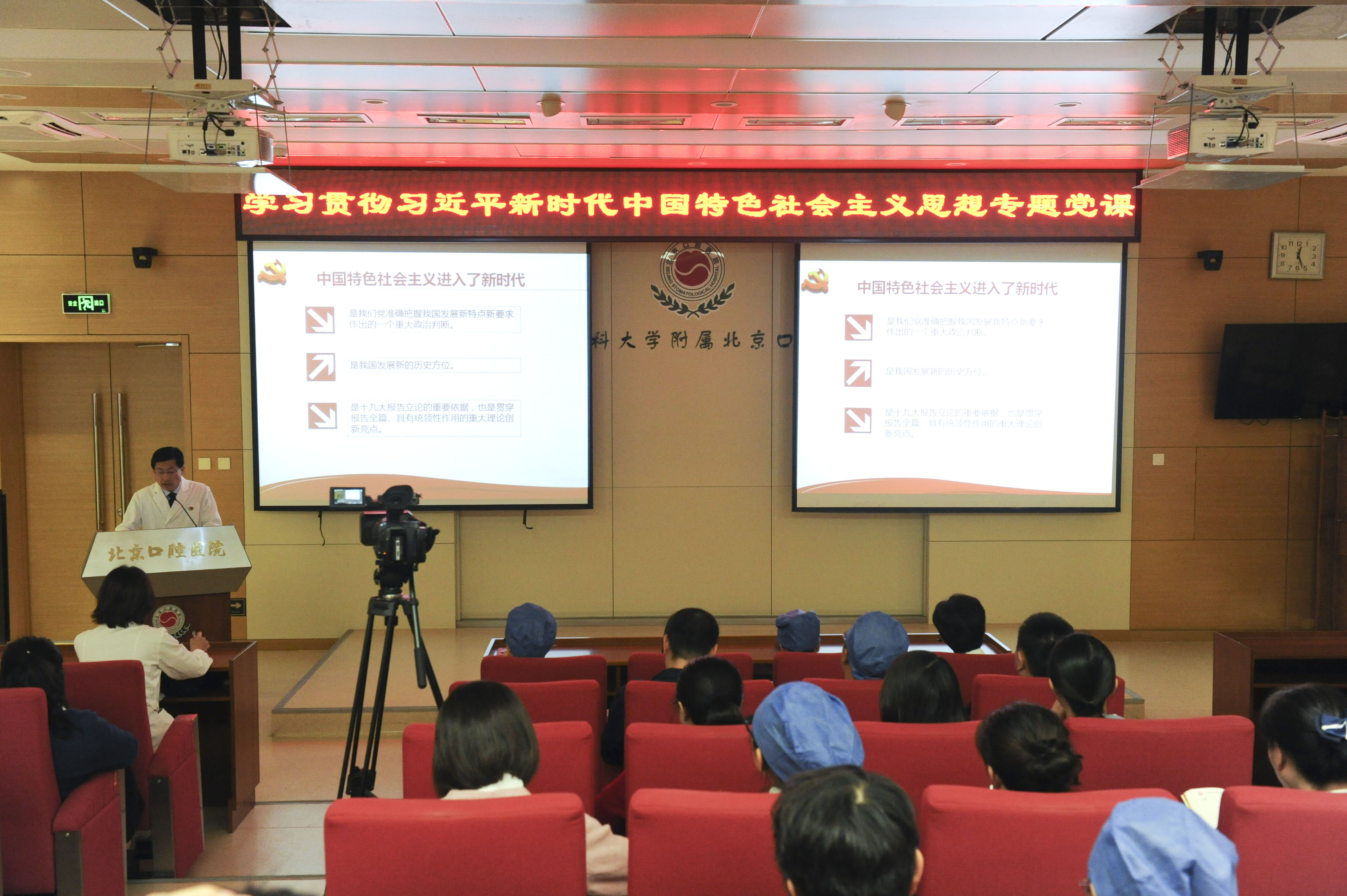 为深入贯彻落实党的十九大精神,引领党员干部进一步深化对习近平新时代中国特色社会主义思想的理解认识,10月16日,医院党委副书记、院长白玉兴在教学楼阶梯教室为内科党支部和正畸党支部全体党员及入党积极分子们讲授了一堂以“中国特色社会主义进入了新时代,坚定‘四个自信’”为主题的专题党课。